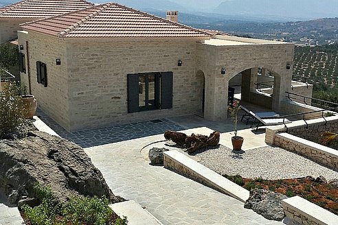 This new, in a traditional style built, stone house is located at the outskirts of the picturesque village of Prines, in a distance of about 5 km to the city of Rethymno. The villa is situated on a plot of 13.000 m² with a gorgeous view to the sea and the white mountains.