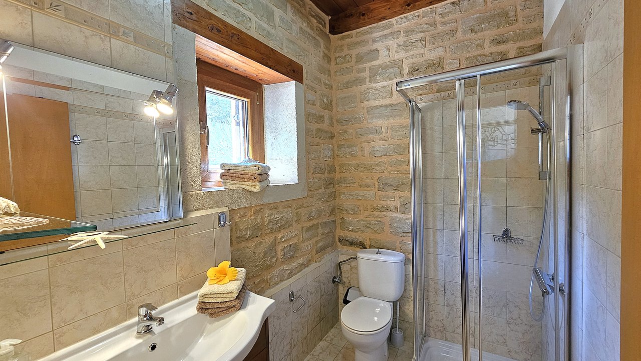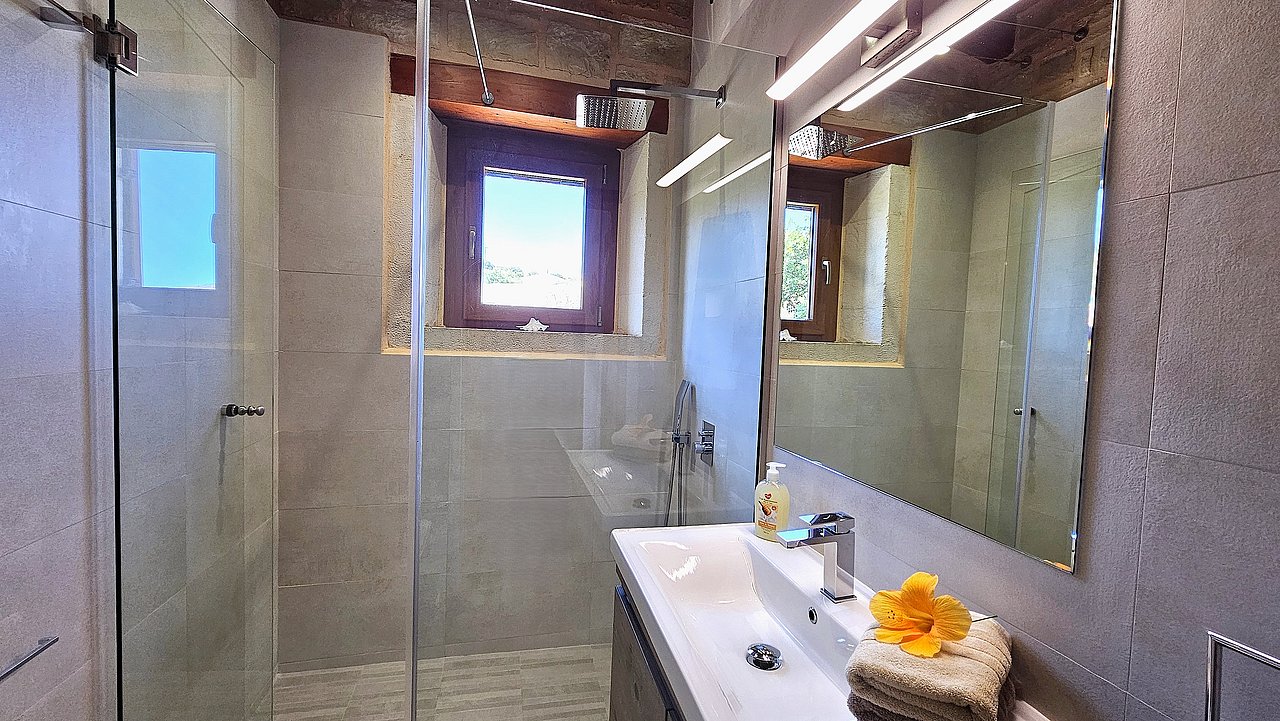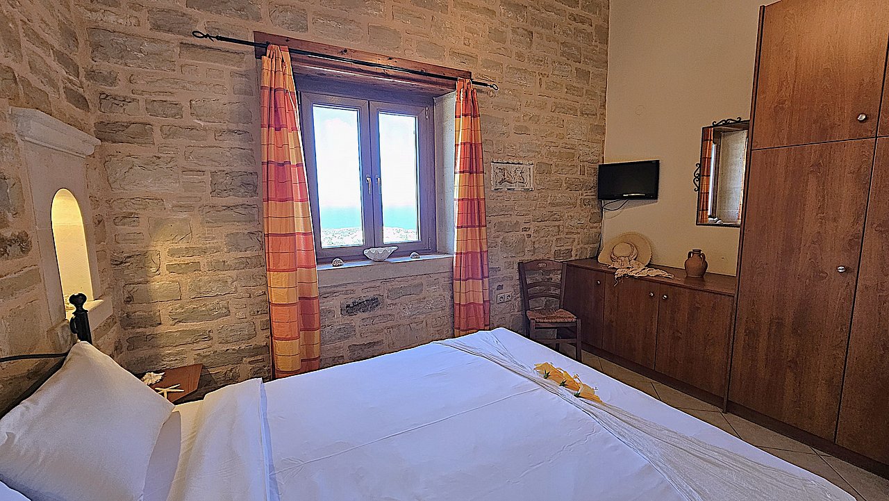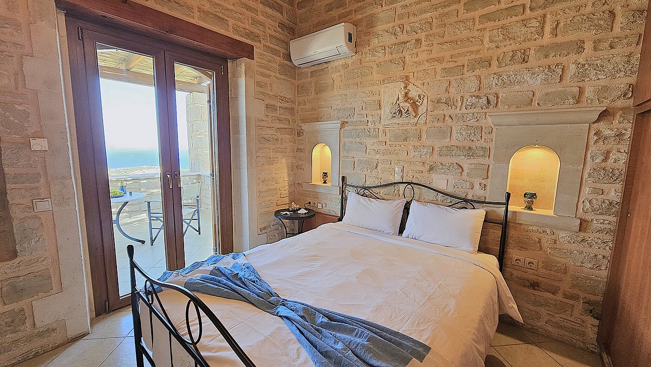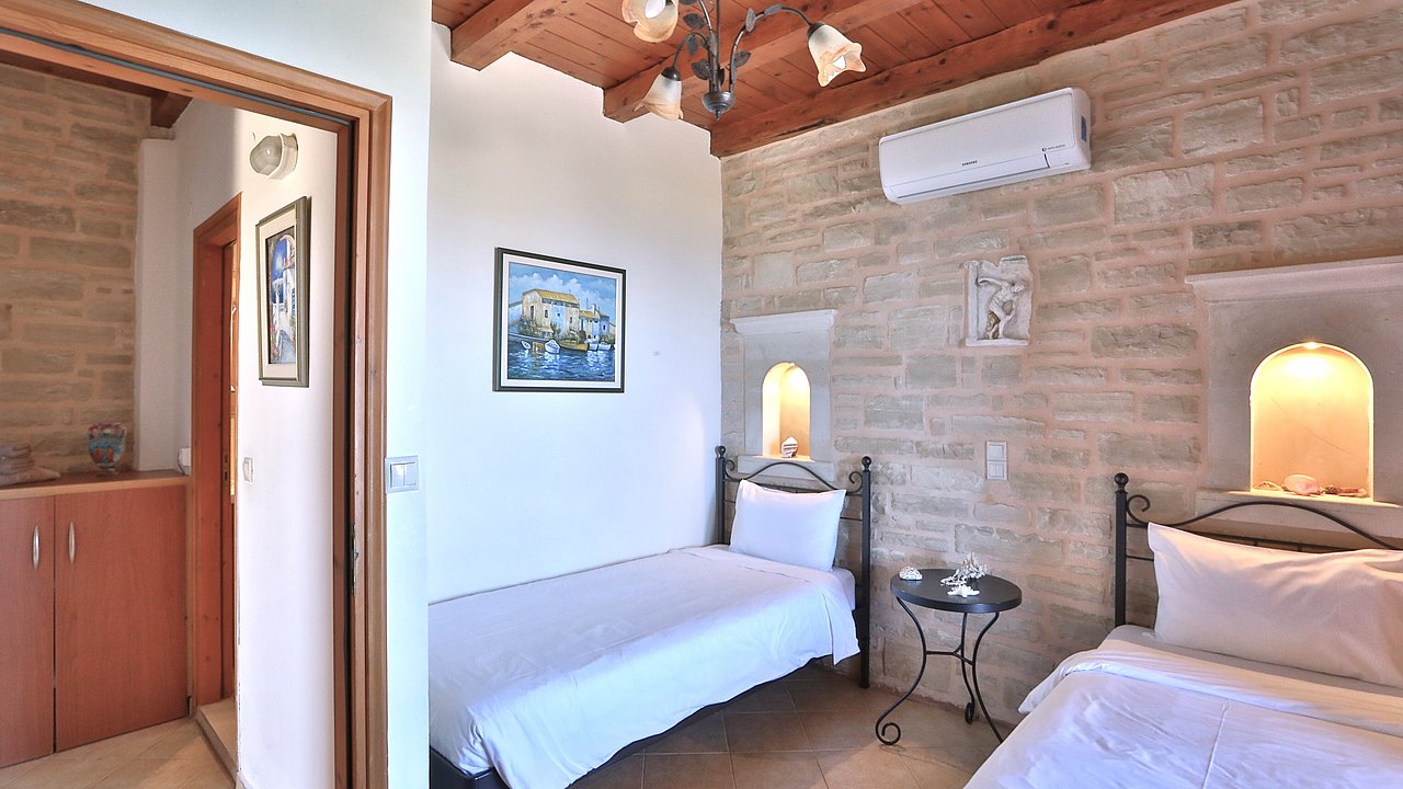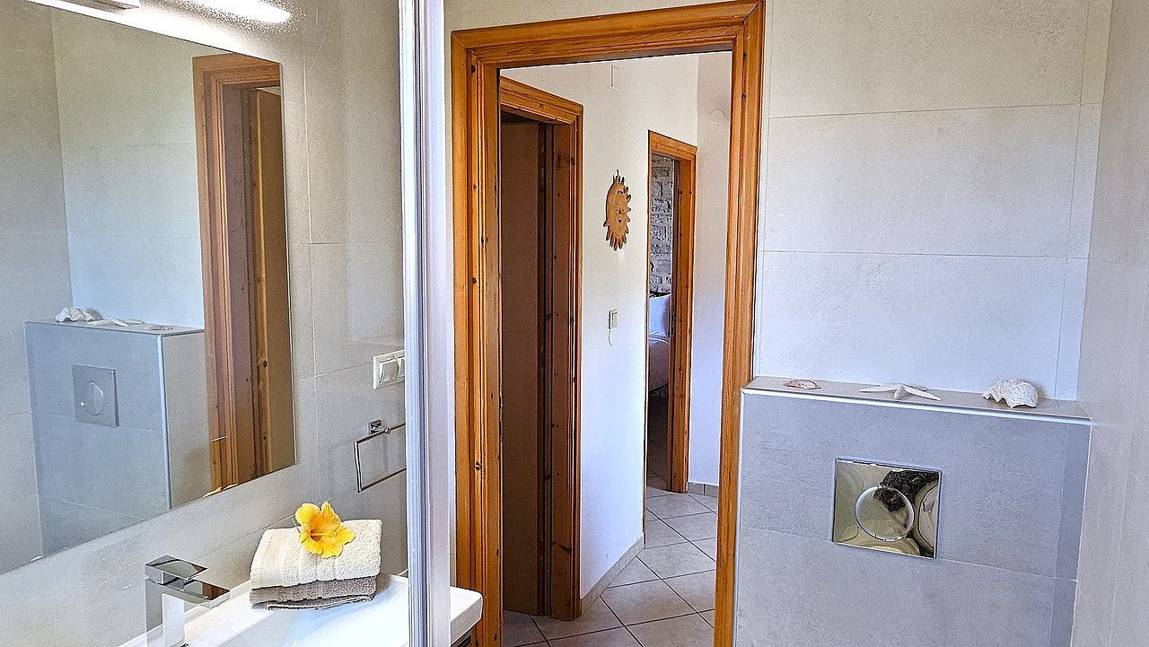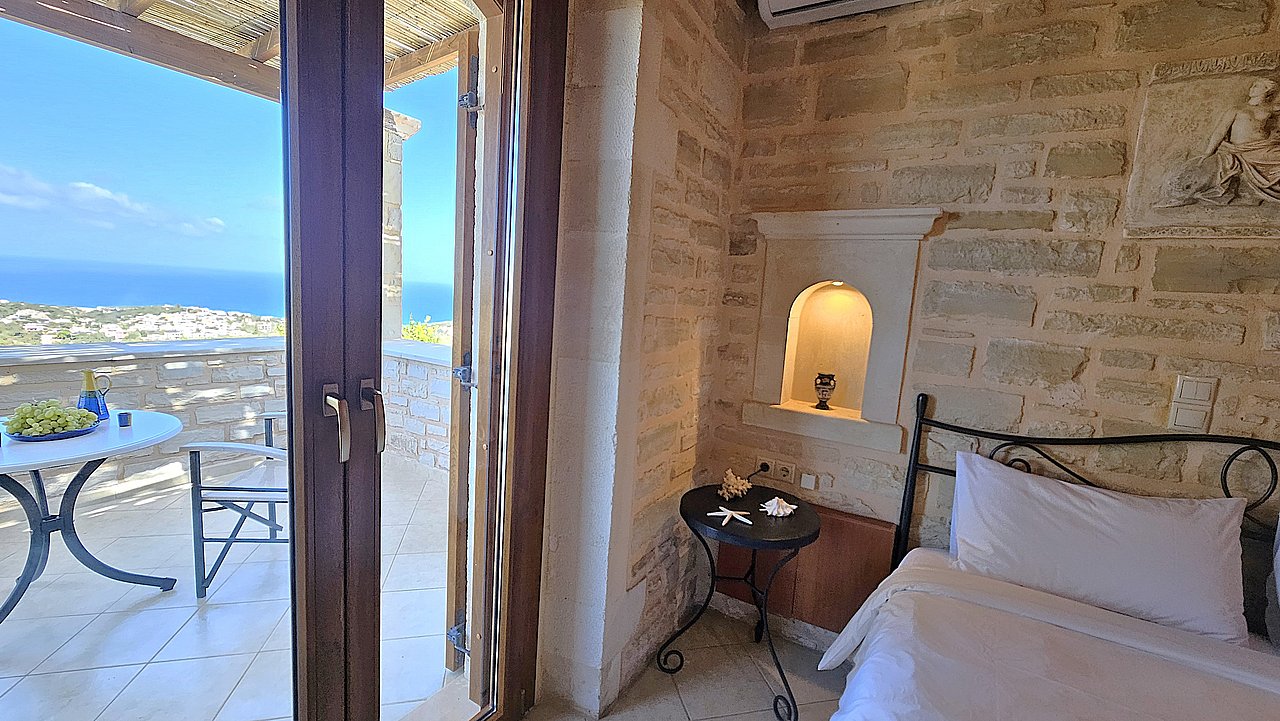 Der Garten ist mit einheimischen Pflanzen und Palmen bepflanzt. Der geflieste Pool misst ca. 8x4 m. Um den beheizbaren Pool (in der kälteren Jahreszeit, wenn das Wetter es zuläßt) ist eine große geflieste Liegeterrasse. Es stehen Ihnen bequeme Liegen und Sonnenschirme zur Verfügung. Im Poolbereich befindet sich auch eine Aussendusche. Geniesen Sie hier bei einem Glas Wein die traumhaften Sonnenuntergänge Kretas! Wenige Meter vor dem Schlafzimmer befindet sich der Pool. Auch von hier haben Sie einen ausgezeichneten Blick auf das Meer und nach Gerani.