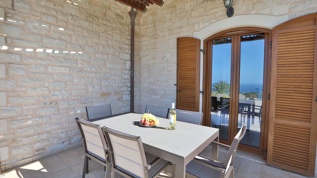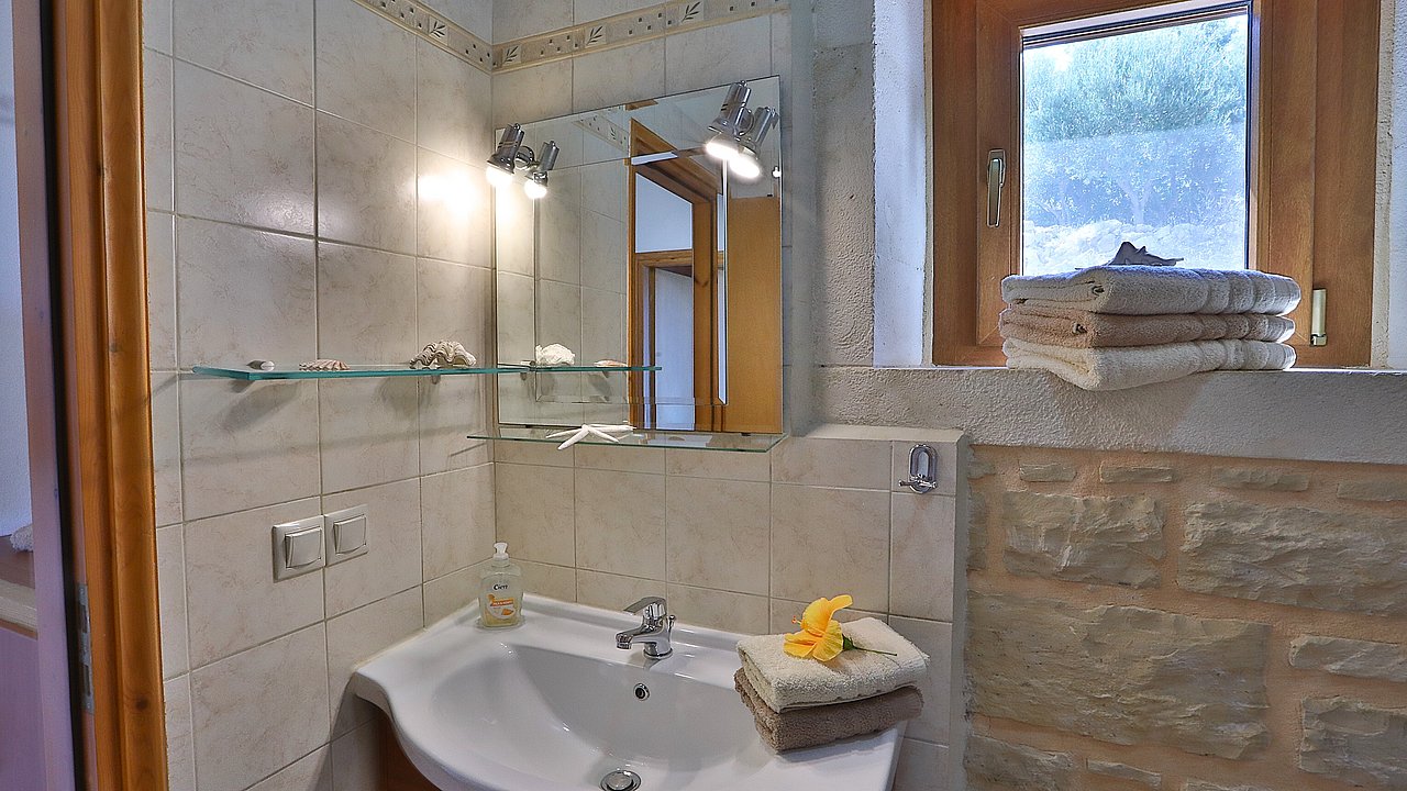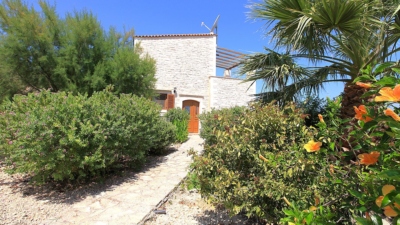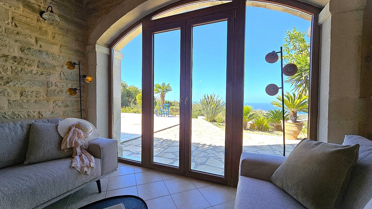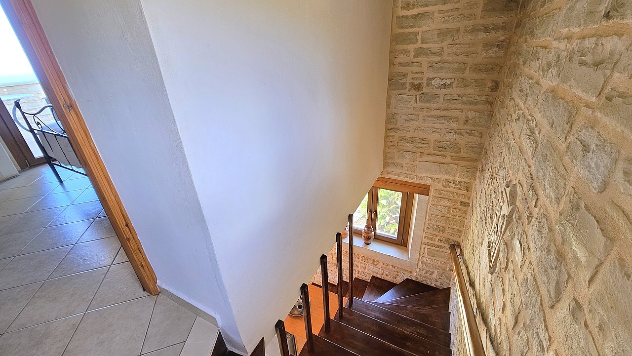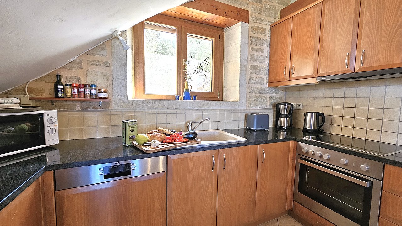 Ein Teil des Grundstückes ist naturbelassen. Über eine Steintreppe erreichen Sie den unteren Teil des Grundstückes. Hier gibt es viele einheimische Kräuter. Sie haben einen herrlichen Blick über das Meer bis zur Halbinsel Akrotiri.