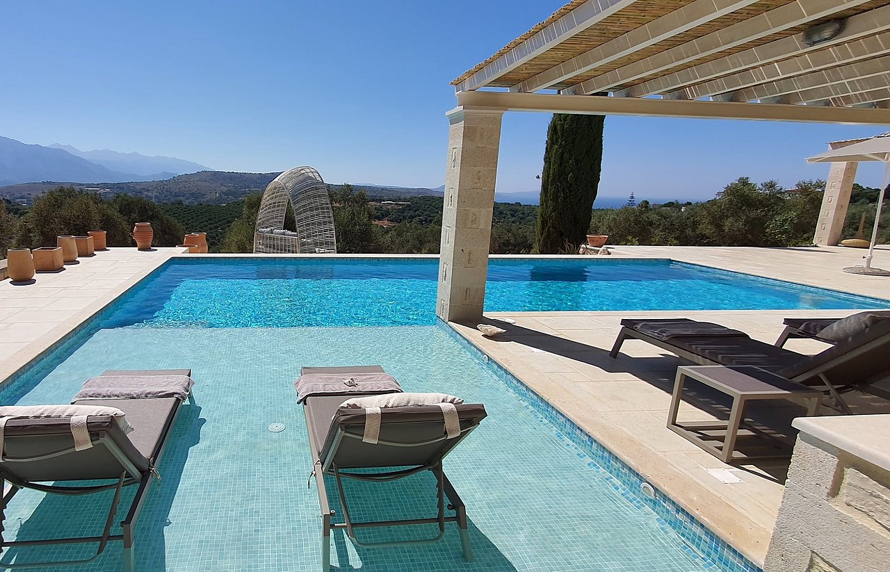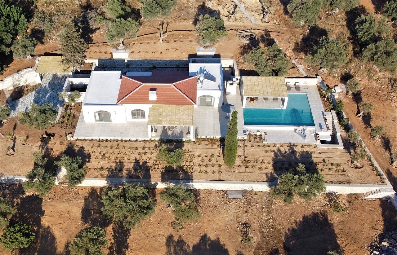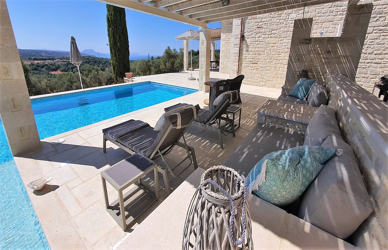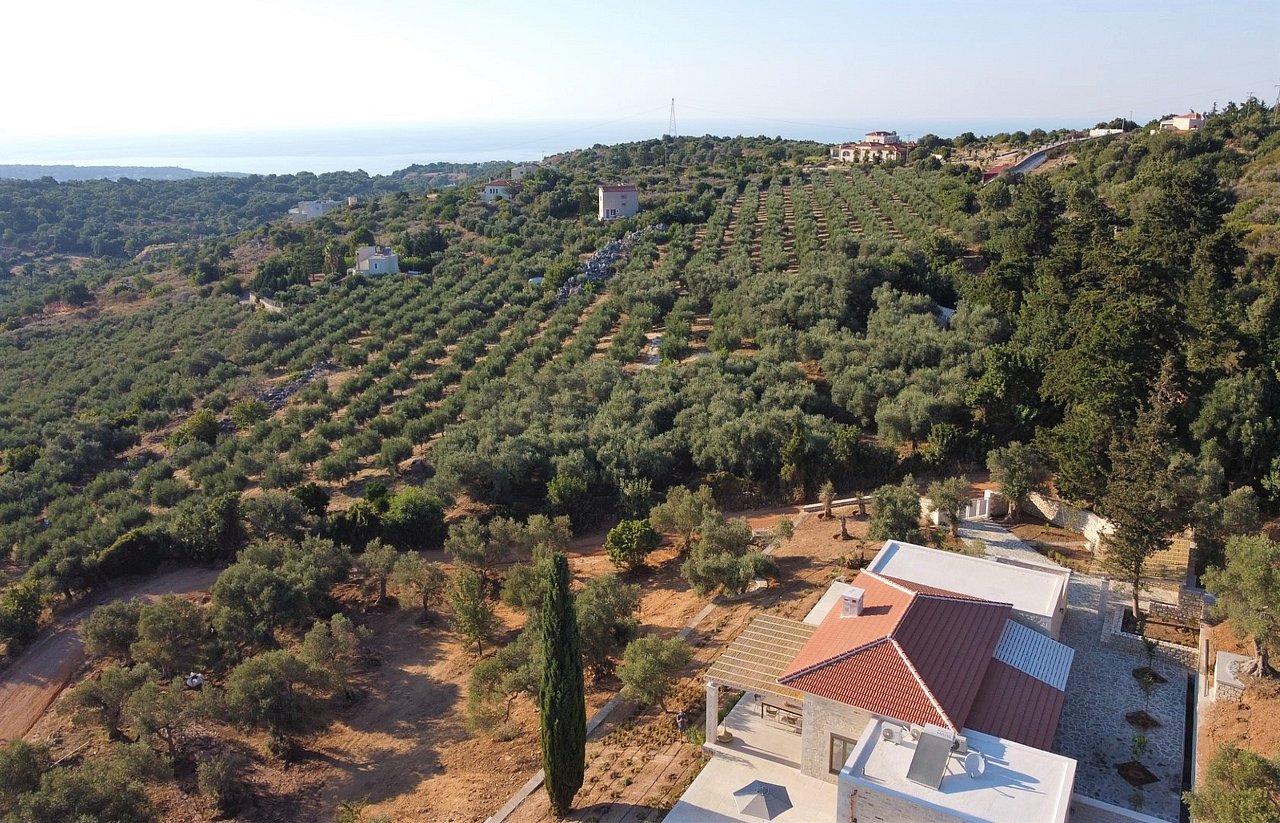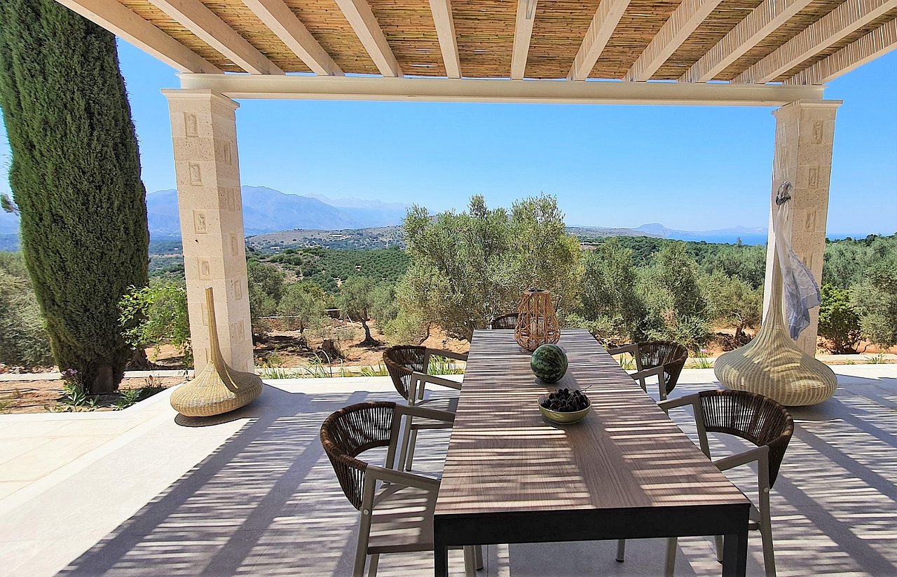 und steht in einem traumhaften Olivenhain auf einem ca. 4.700 qm großen Grundstück, zwischen Prines und Gonia. Der Blick reicht von den Weißen Bergen, über das Hinterland, das Meer, und die Halbinsel Akrotiri, mit traumhaften Sonnenuntergängen. Hier kann man das „Gute Leben“ genießen.