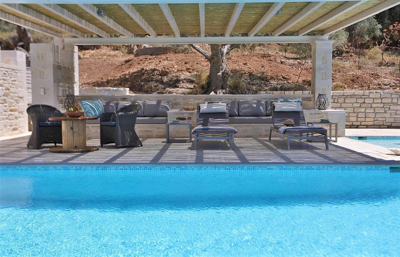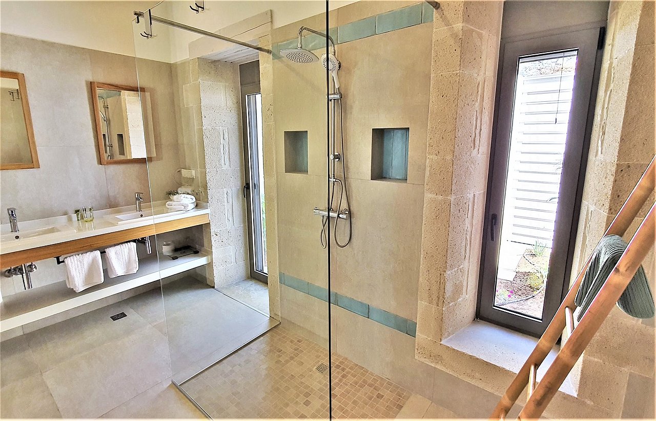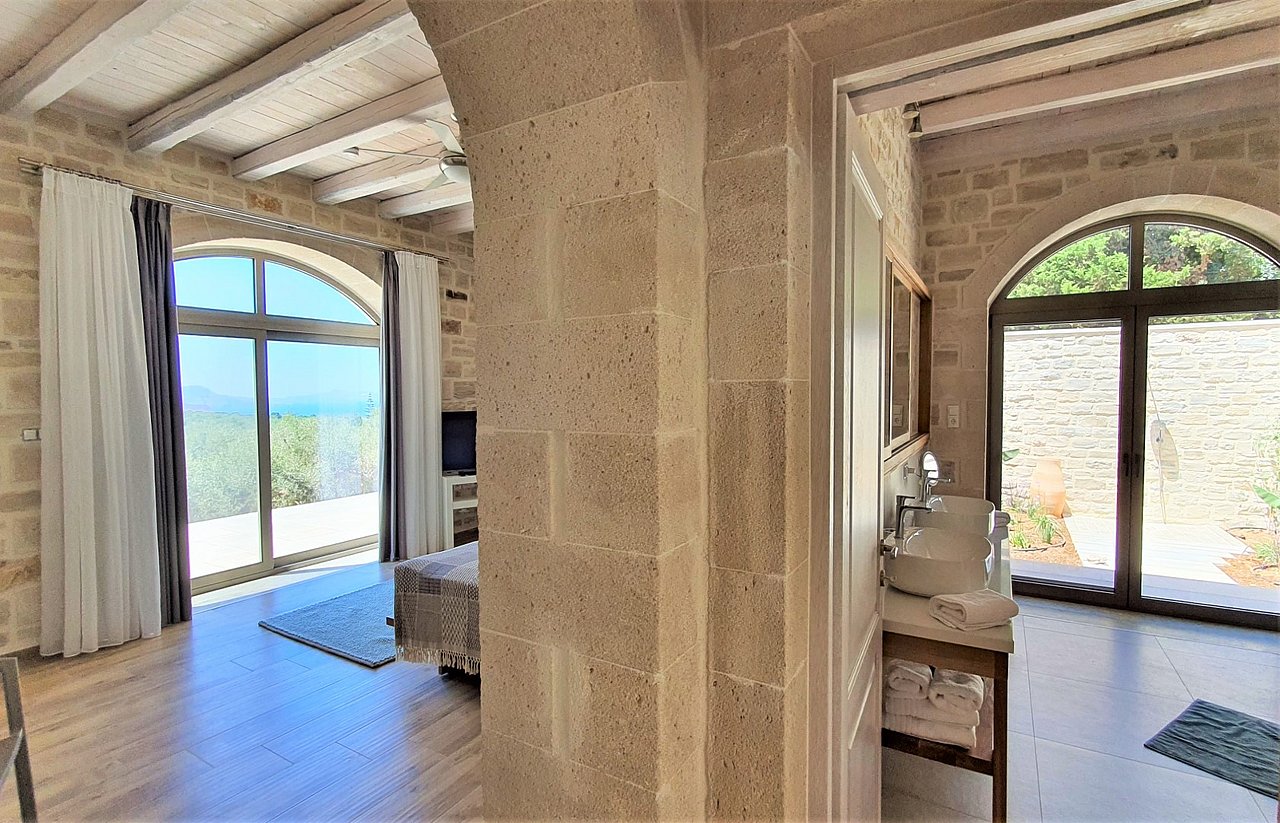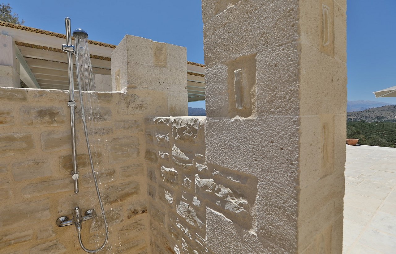 Die „Kali Zoi“ ist eine großzügige Villa von ca. 190 qm und bietet 2 große Schlafzimmer, jeweils mit En-Suite-Bad und zusätzlicher ca. 4x4 m großer Außendusche.