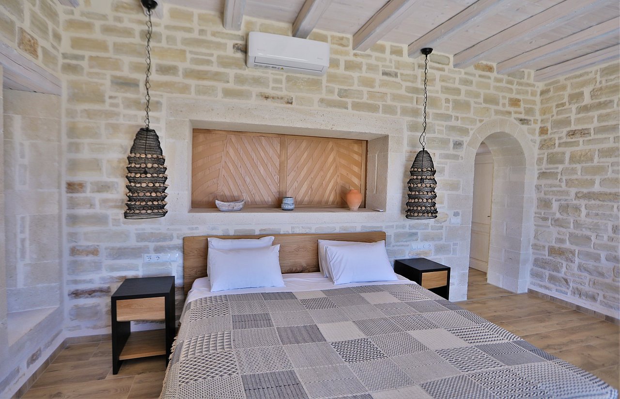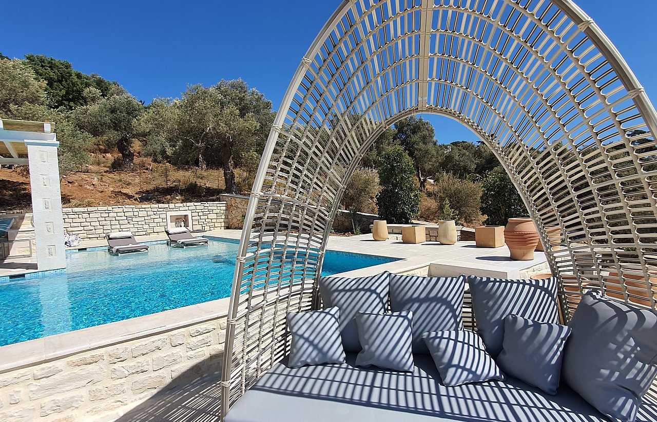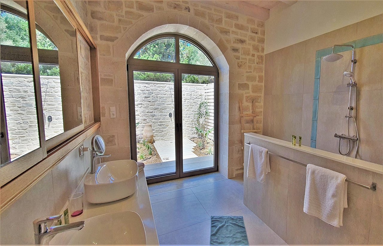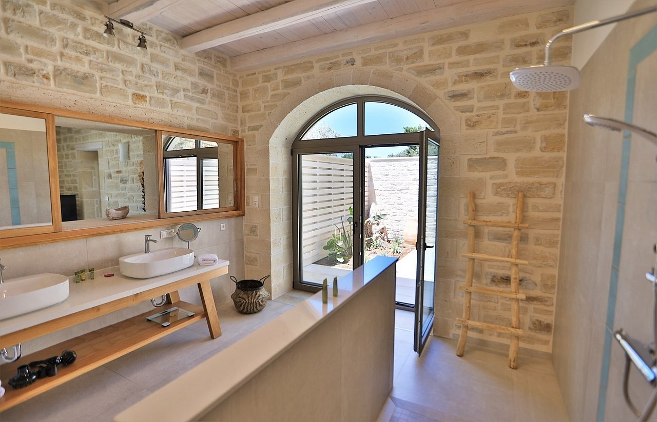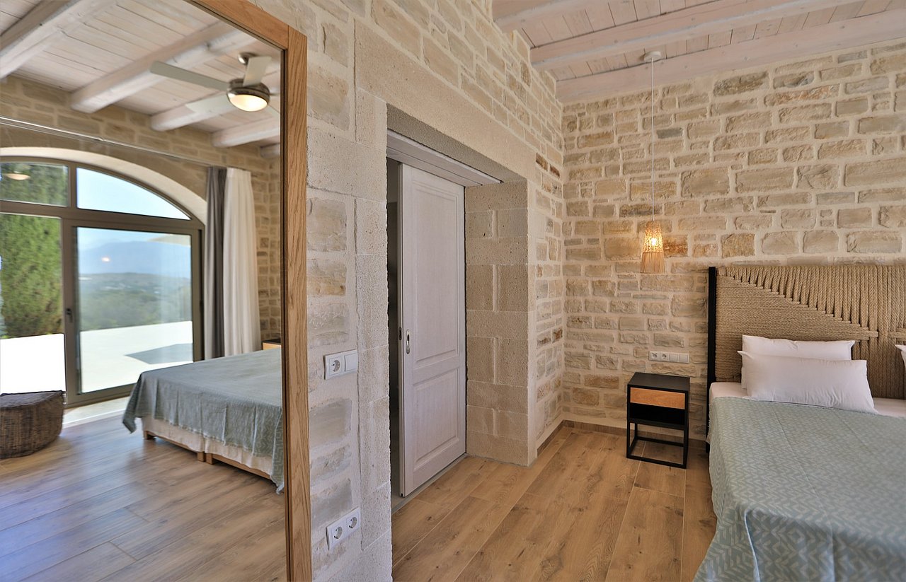 Die „Kali Zoi“ ist eine großzügige Villa von ca. 190 qm und bietet 2 große Schlafzimmer, jeweils mit En-Suite-Bad und zusätzlicher ca. 4x4 m großer Außendusche.