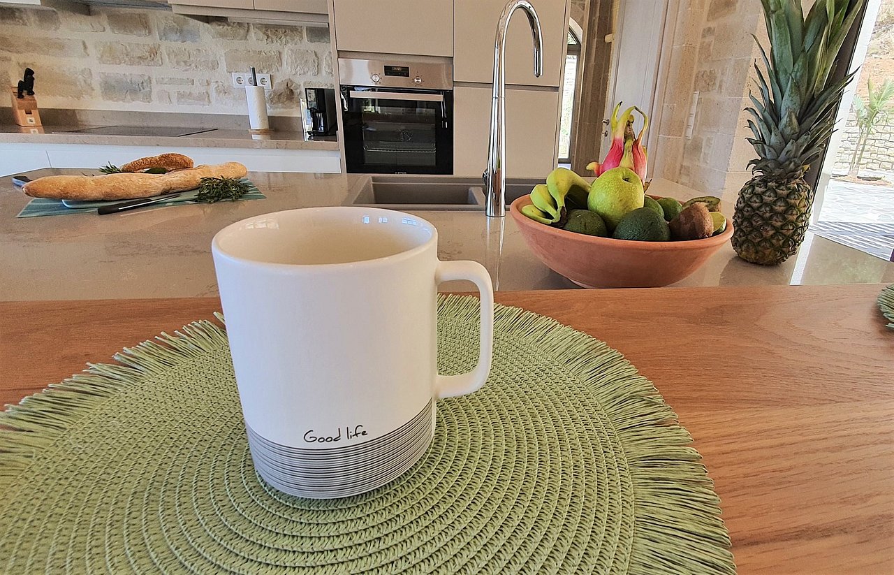 Kücheninsel, Nespresso-Maschine, Filter-Kaffee-Maschine, Toaster, Wasserkocher, elektrische Saftpresse, hochgesetzter Geschirrspüler, hochgesetzter Ofen, Herd, Mikrowelle, Waschmaschine/Trockner, Staubsauger, Bügeleisen, Bügelbrett, Handtücher, Duschtücher, Pooltücher, Geschirrtücher, Föhn, Schminkspiegel (beleuchtet), Personenwaage, Musikanlage mit Bluetooth, Smart-TVs, W-Lan im ganzen Haus und im Poolbereich ohne Datenbegrenzung, kleine Bibliothek, Brettspiele, 5 Duschen, 2 Bäder(jeweils mit eigenem Zugang zur Ausendusche), Gästetoilette, in jedem Schlafzimmer einen Tresor, Abstellraum…. Alle Fenster haben Moskitonetze.
