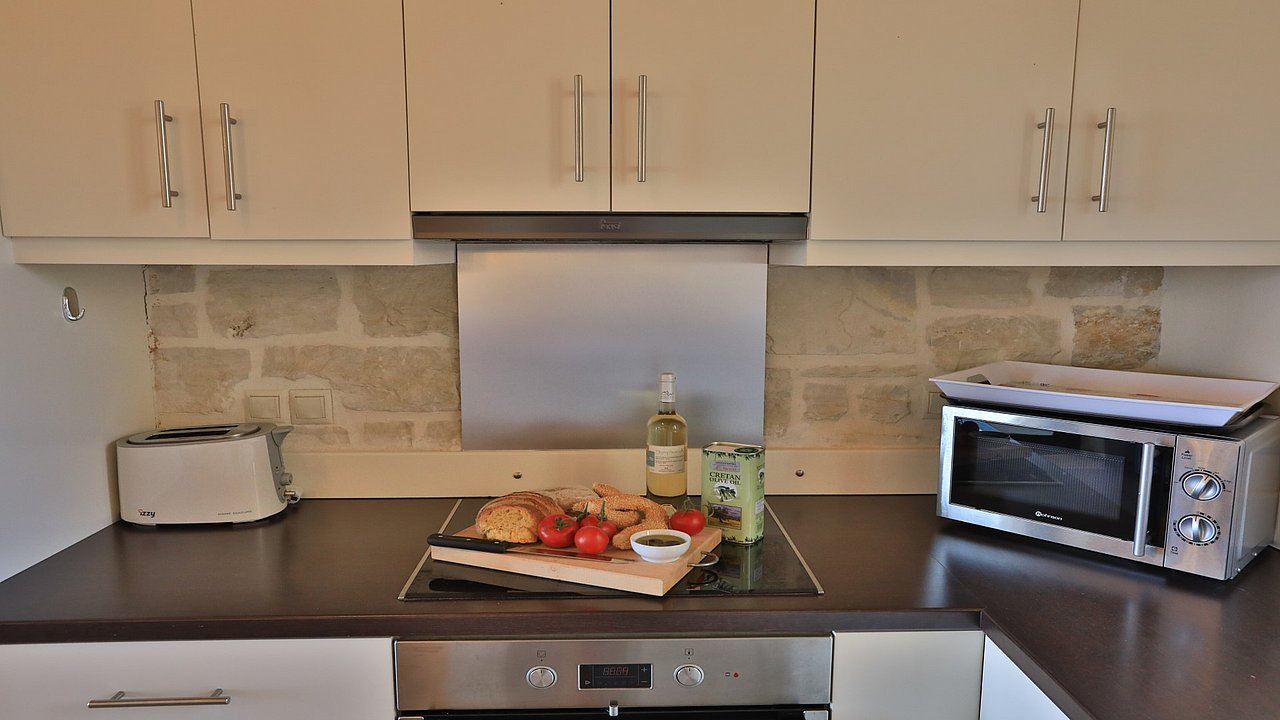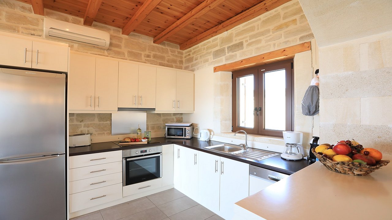 Die Villa Lofos ist natürlich komplett ausgestattet. Waschmaschine, Bettwäsche, Handtücher, Duschtücher, Pooltücher, Geschirrtücher, Fön, Bügeleisen… alles vorhanden.
