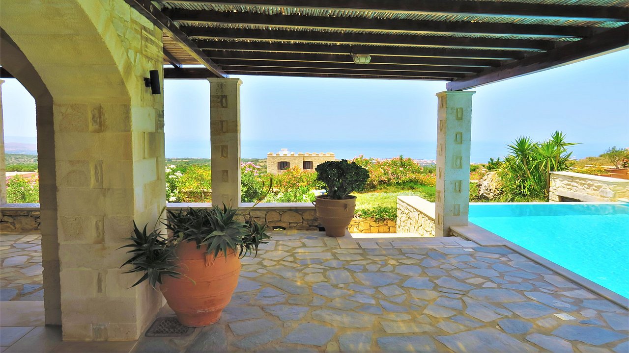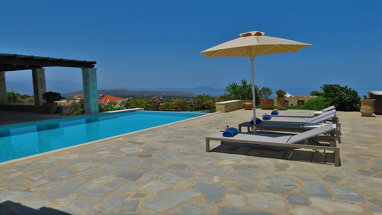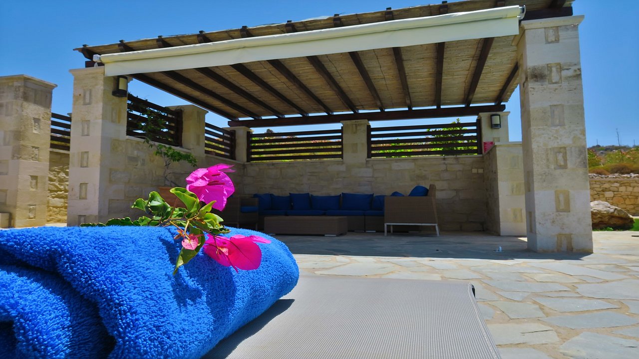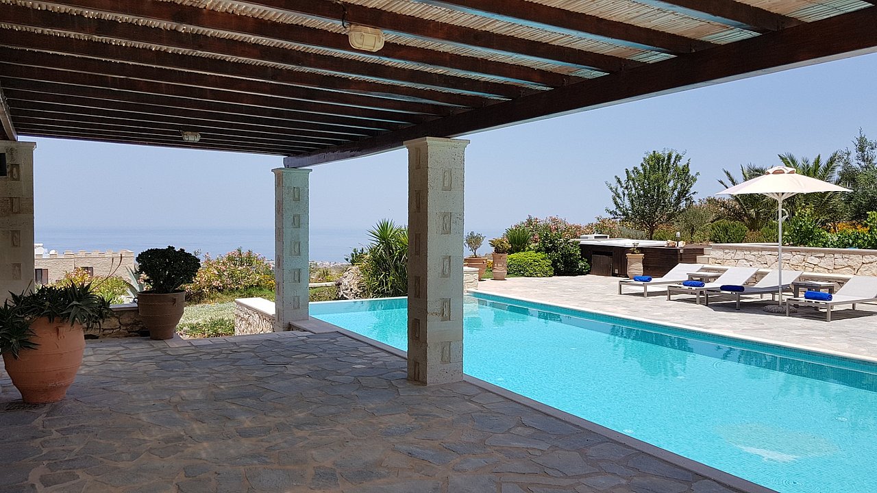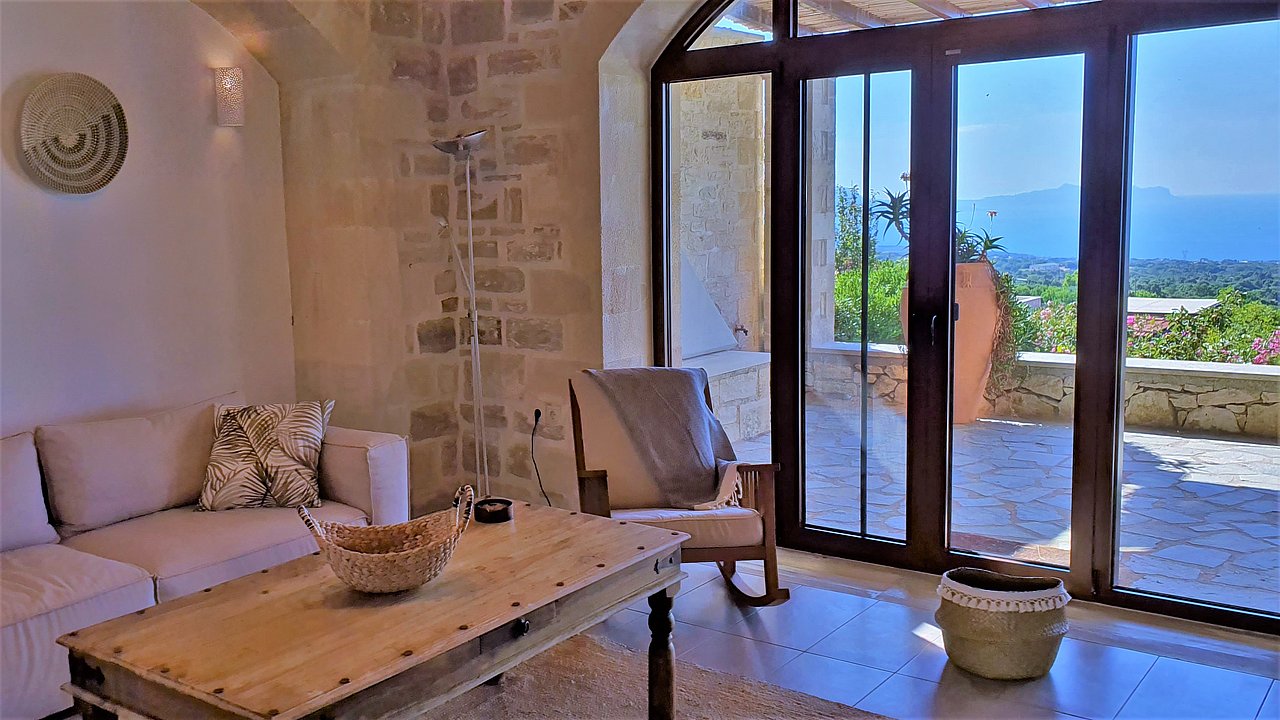 Entspannen Sie hier in vollkommener Ruhe und in mitten der traumhaften Natur! Sie sehen die Weißen Berge, die Halbinsel Akrotiri und blicken über das Meer – einfach ein grandioses Panorama! Hier kann man die Seele baumeln lassen!