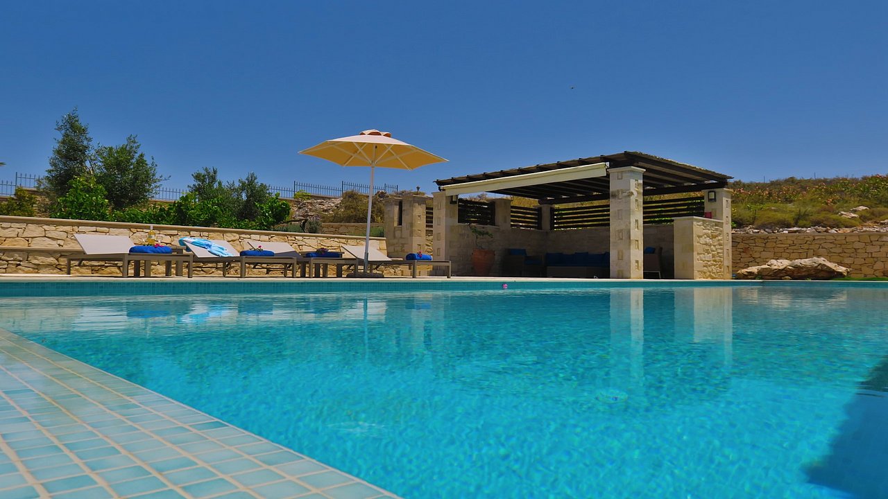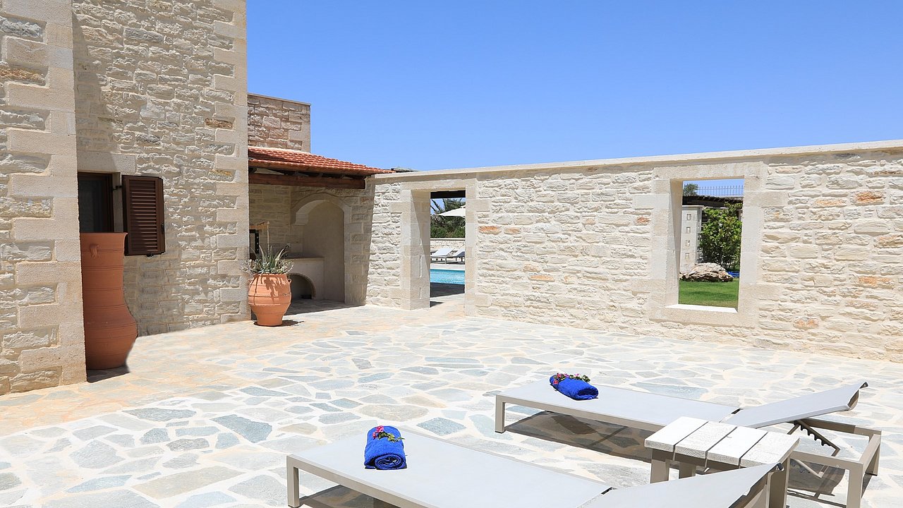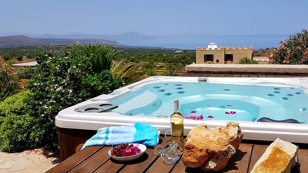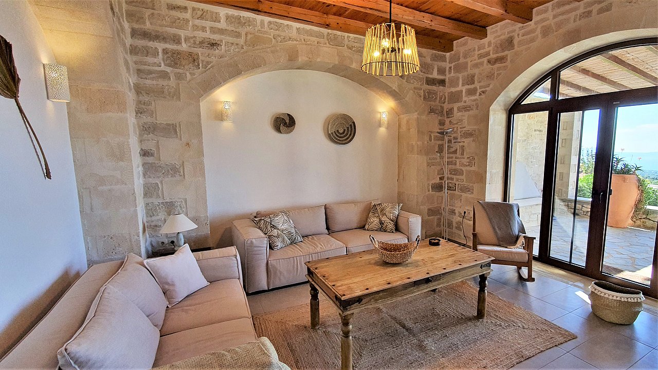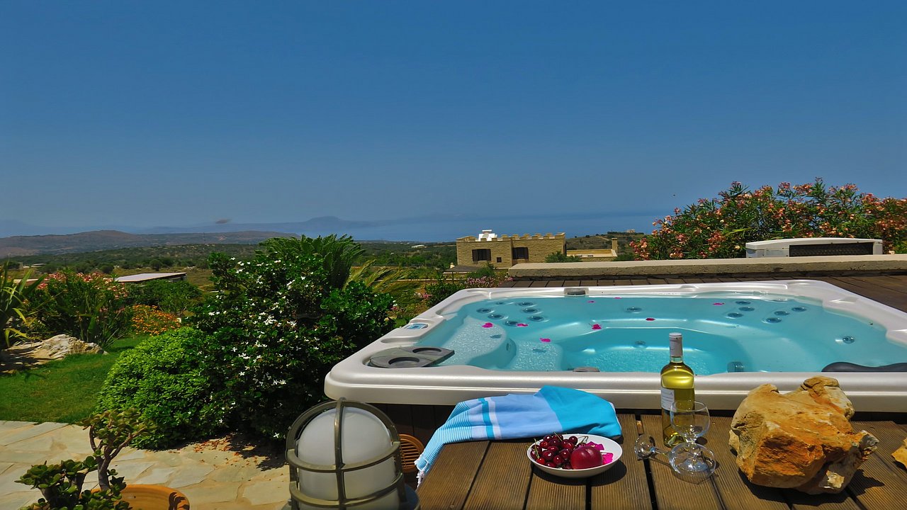 Entspannen Sie hier in vollkommener Ruhe und in mitten der traumhaften Natur! Sie sehen die Weißen Berge, die Halbinsel Akrotiri und blicken über das Meer – einfach ein grandioses Panorama! Hier kann man die Seele baumeln lassen!