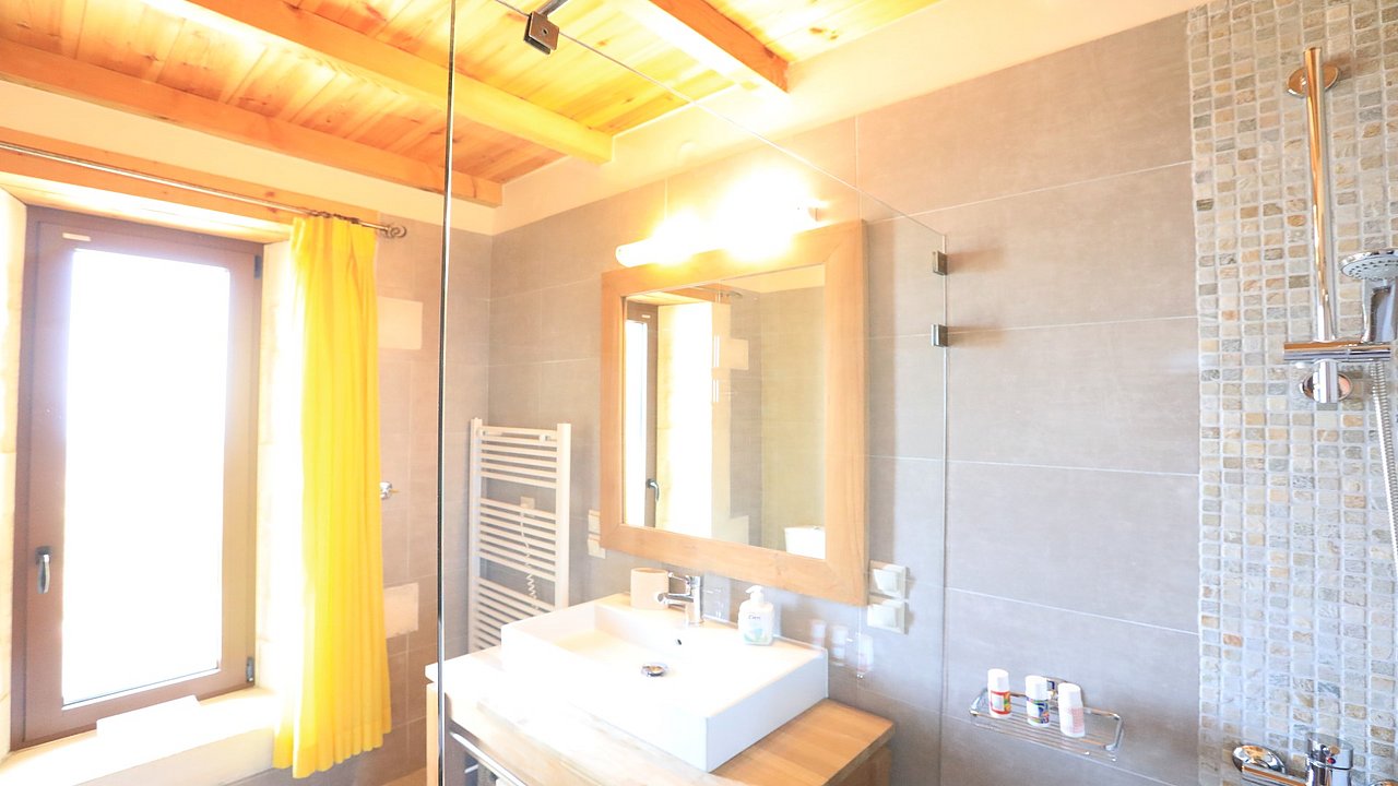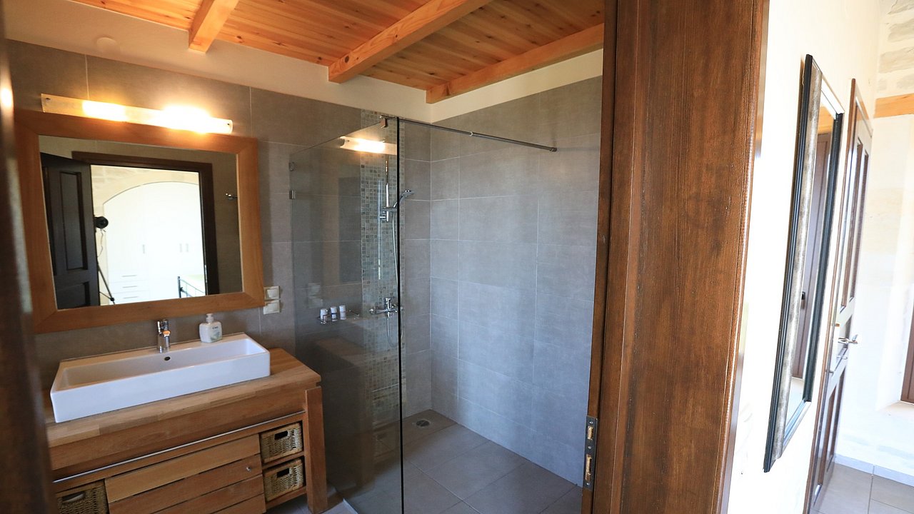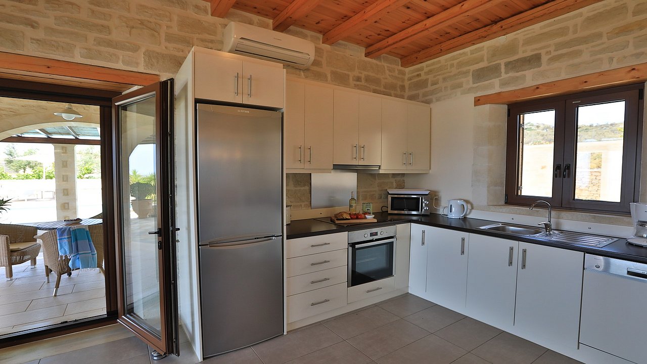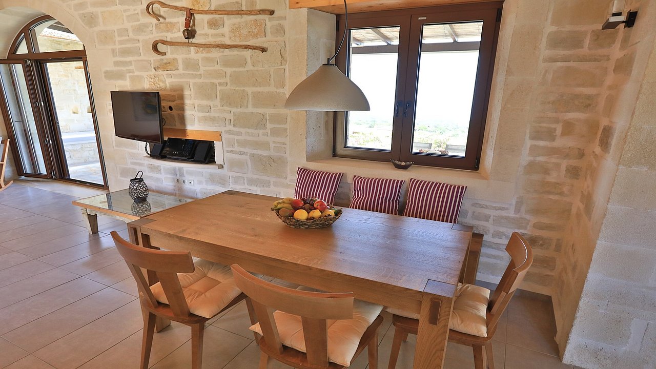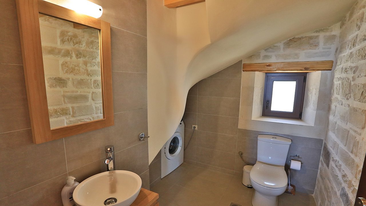 Die Villa wurde aus Naturstein erbaut und hat 70 cm dicke Aussenmauern, die einen einzigartigen Wohnkomfort bietet! Kühle im Sommer und Wärme in der kälteren Jahreszeit. Durch die Architektur der Villa haben Sie von allen Zimmern und den Bädern einen traumhaften Meerblick.