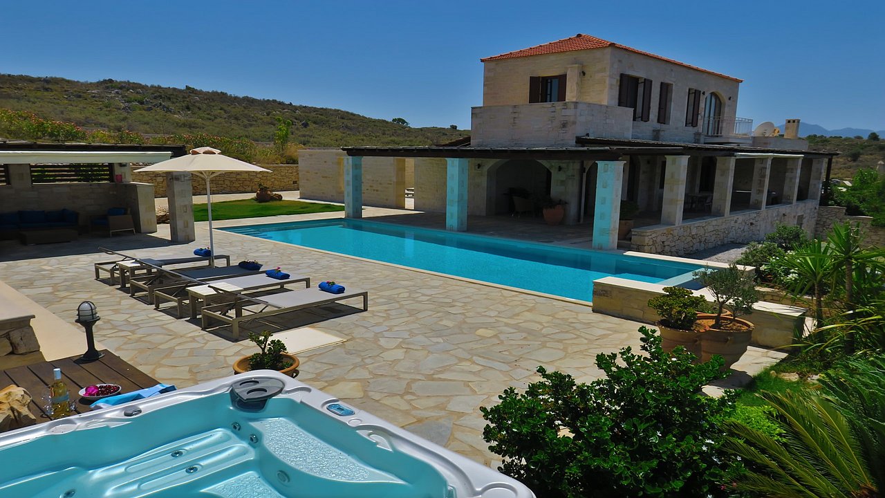 Die Villa Lofos, das so viel heißt wie „der Hügel“, ist eine moderne Villa mit traumhaftem Ausblick.