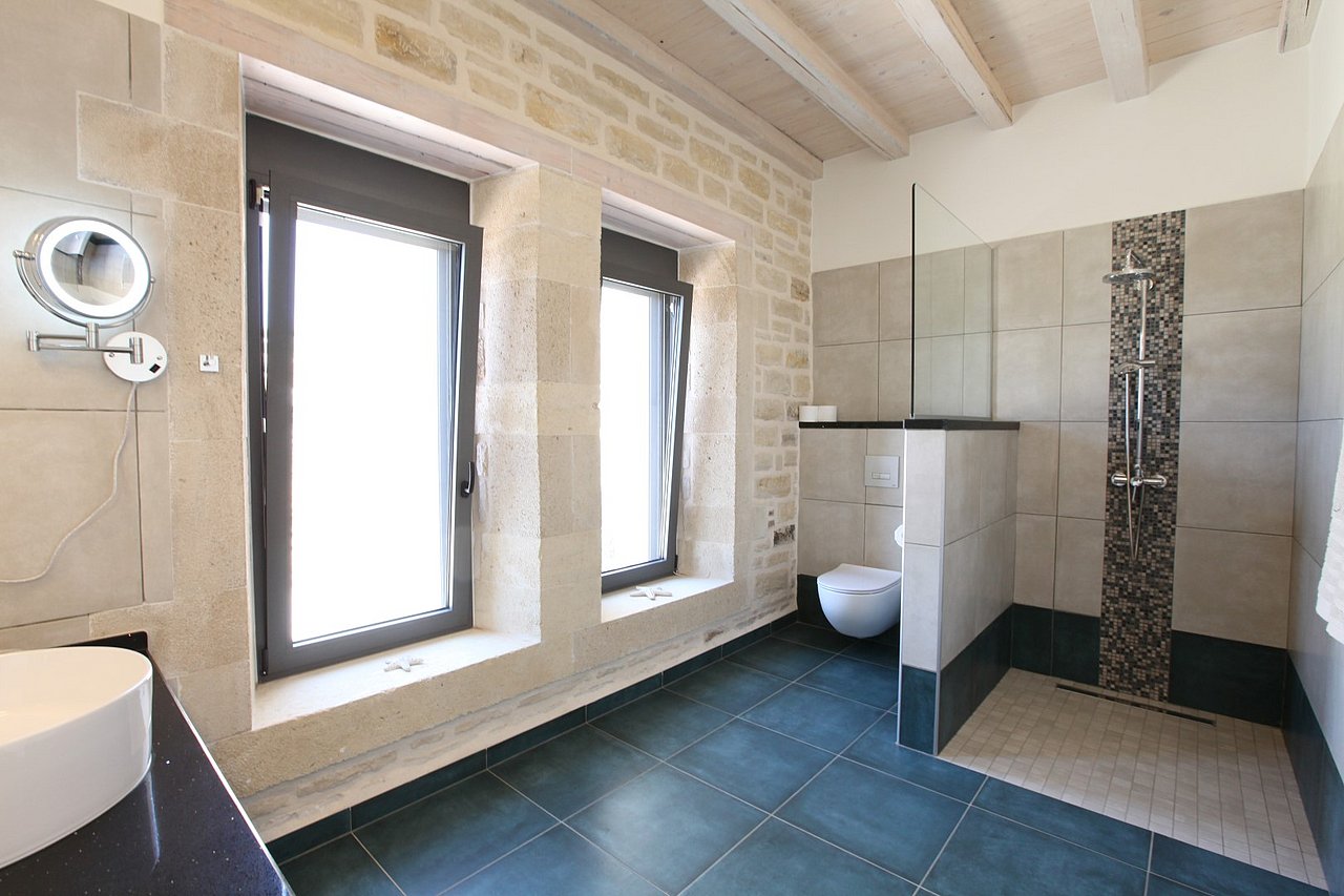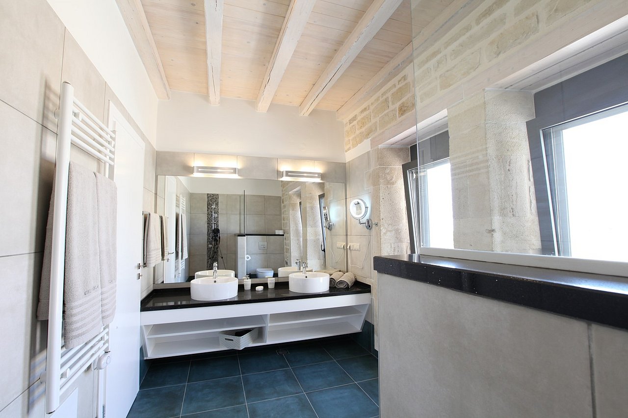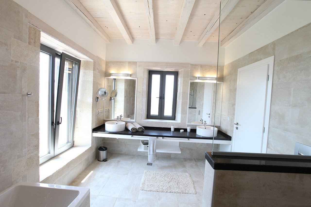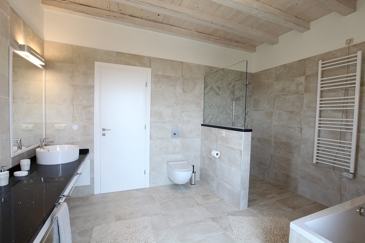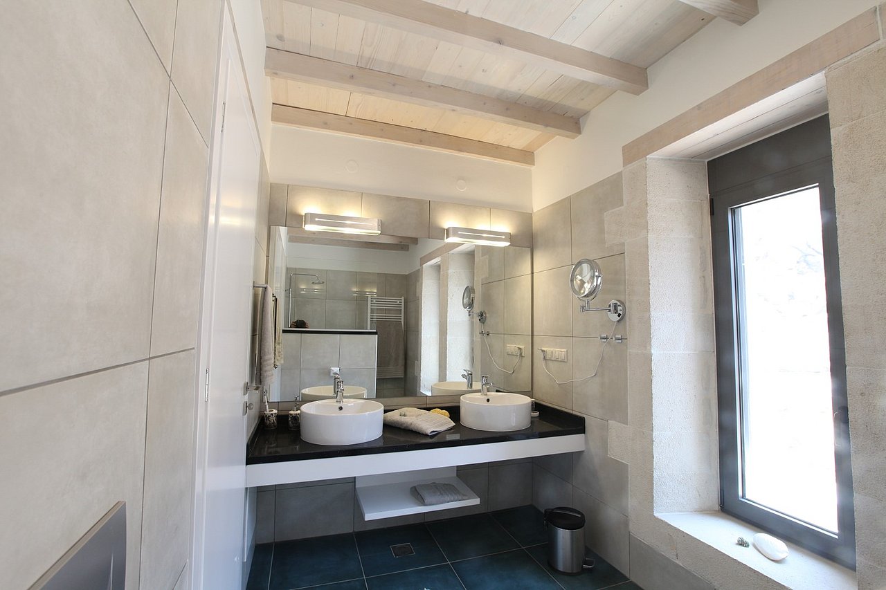 Die angrenzenden En-suite-Badezimmer sind geräumig und hell, u.a. ausgestattet mit beleuchtetem Kosmetikspiegel, Föhn.