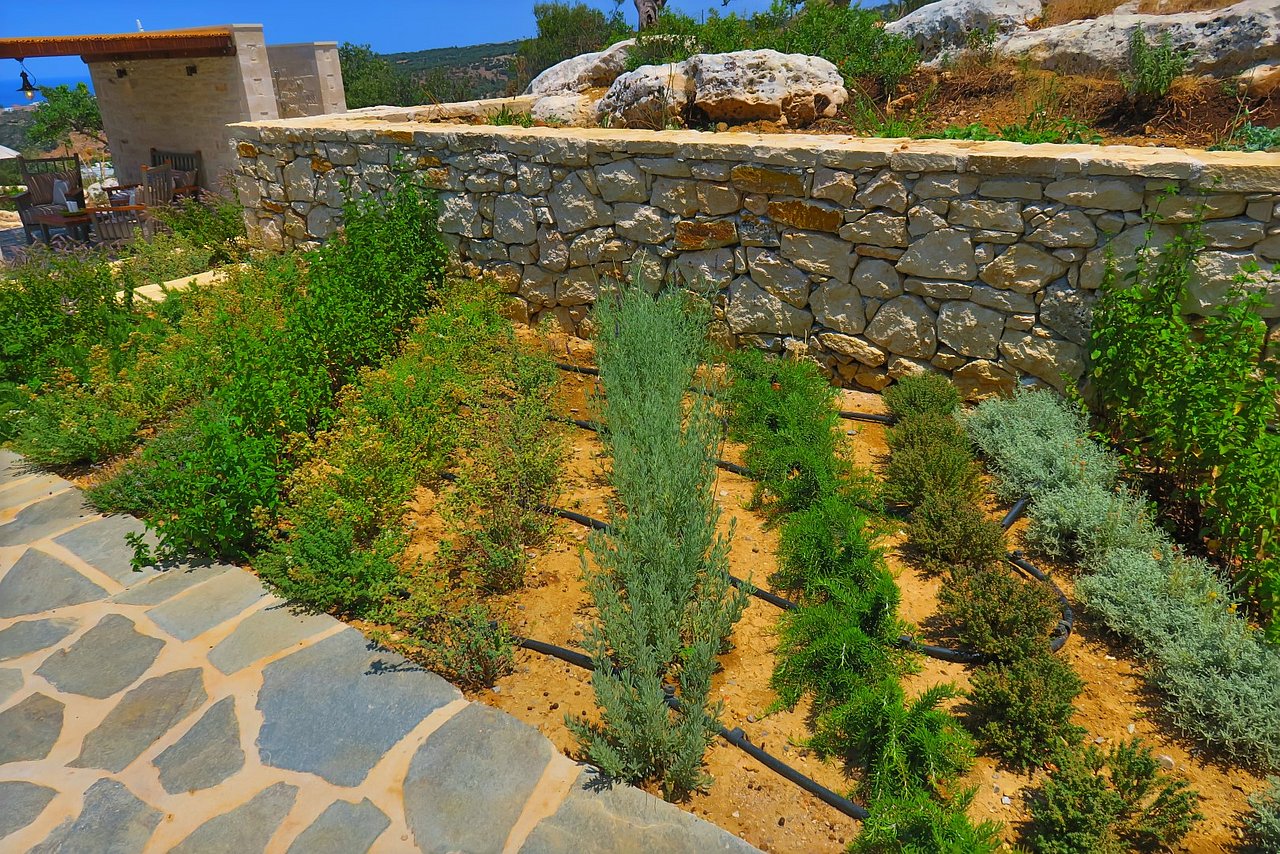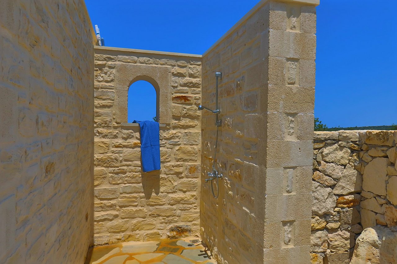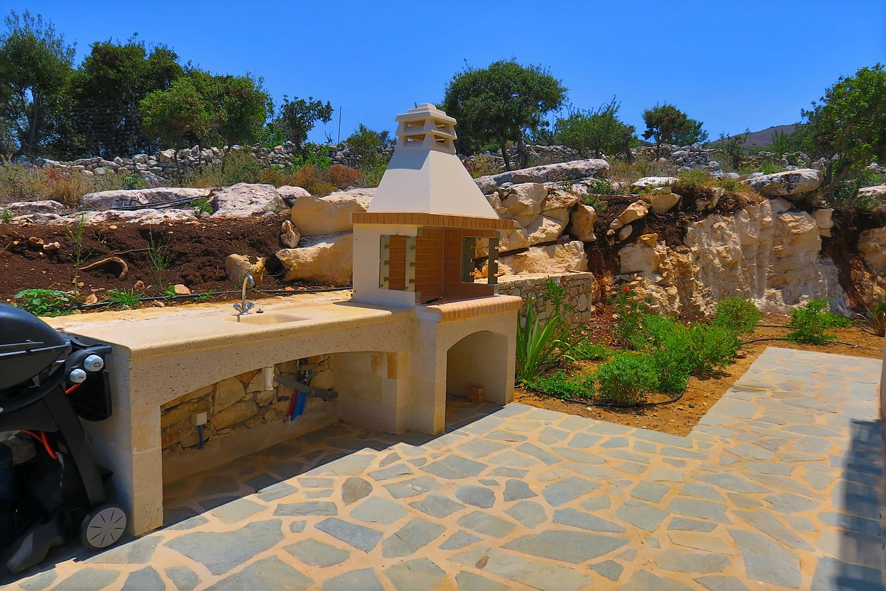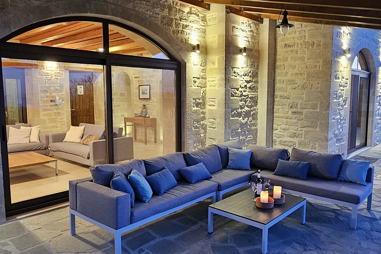 Der große Außenbereich der Villa Minea ist geprägt durch den ursprünglichen Baumbestand und die beim Bau der Villa erhalten gebliebenen Felsformationen, die das Bild der kretischen Landschaft prägen. Direkt vor der Villa genießen Sie vom überschatteten Essplatz oder vom gemütlichen Lounge-Bereich aus den herrlichen Blick über die liebevoll gestaltete Gartenanlage bis zum Meer. Auf dieser Ebene befindet sich auch die angrenzende Outdoor-Küche. Inmitten des Kräutergartens lässt sie den Grillfreunden die Wahl zwischen einem gemauertem Holzkohlegrill oder einem Gasgrill von Weber.Viele Liegemöglichkeiten mit schattenspendenden Sonnenschirmen und ein zusätzlich überdachtes Pooldeck mit Loungemöbeln rund um den Pool versprechen Badevergnügen und gemütliche Stunden.