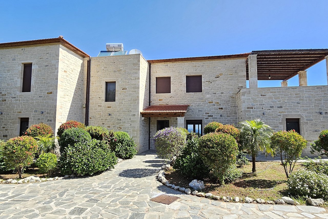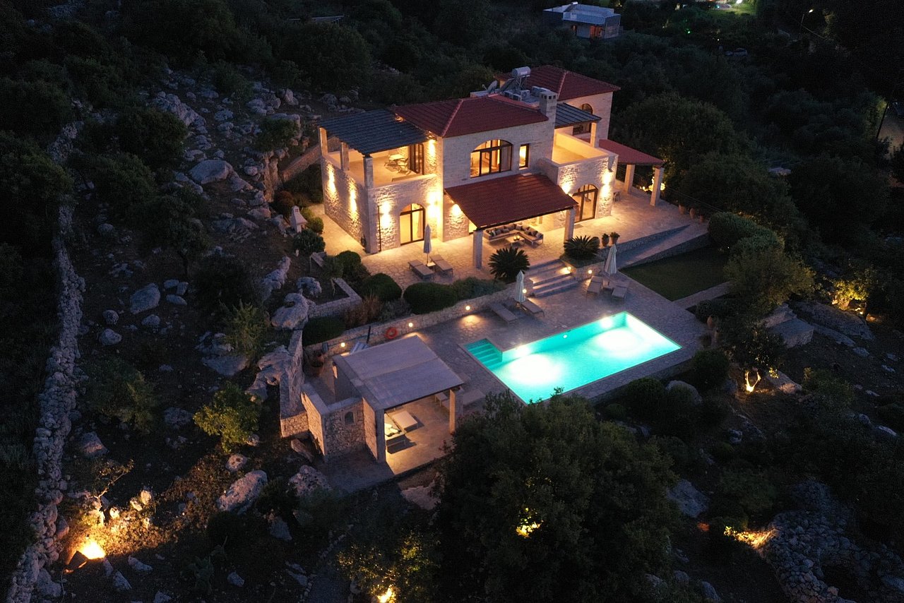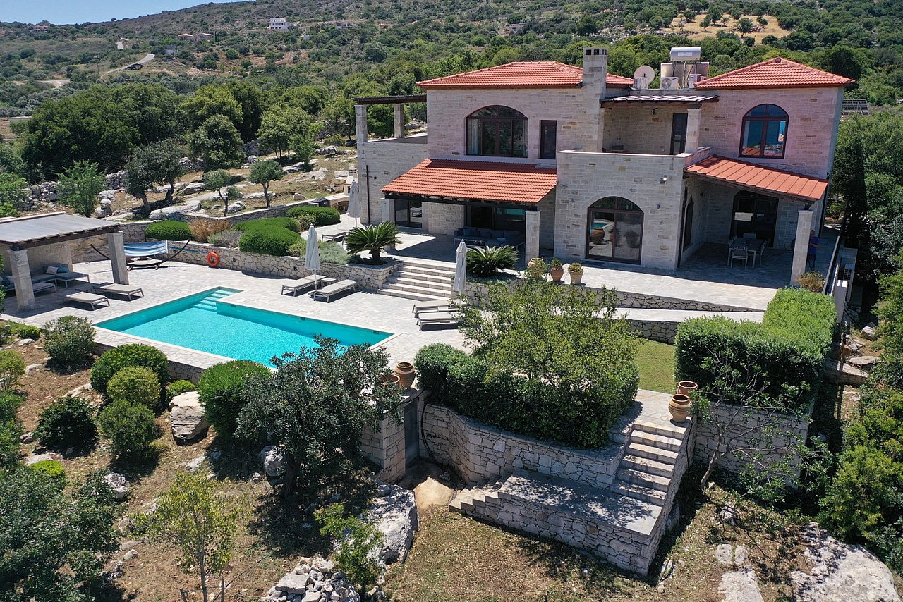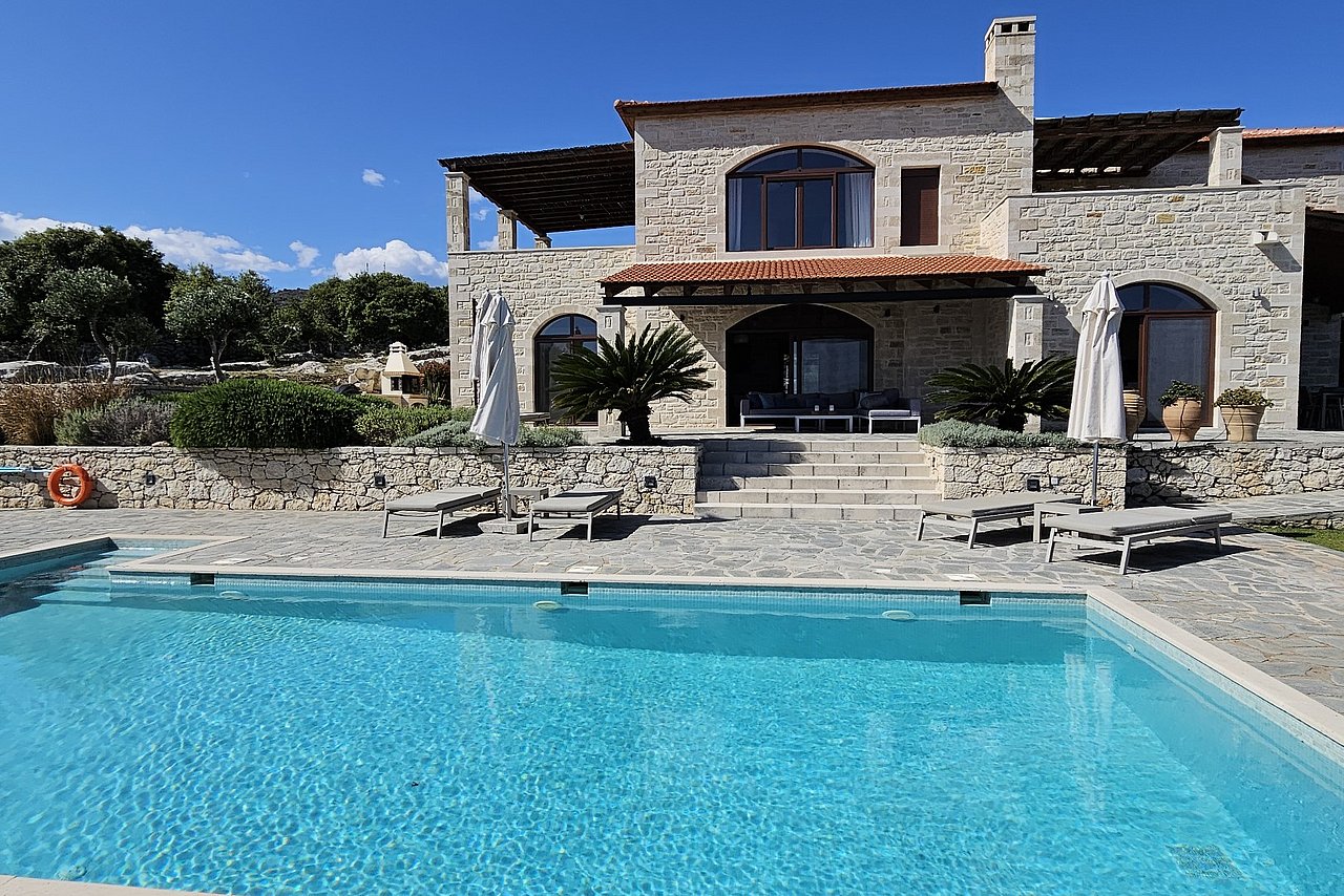 Die traumhaft gelegene, 2015 errichtete Natursteinvilla bietet mit einer Wohnfläche von ca. 235 qm Platz für mindestens 8 Personen und befindet sich auf einem einzigartigen, 12.000 qm großen vollständig eingezäunten Privatgrundstück oberhalb des kleinen Dörfchens Gerani und besticht mit einem fantastischen Meerblick aus allen Zimmern.