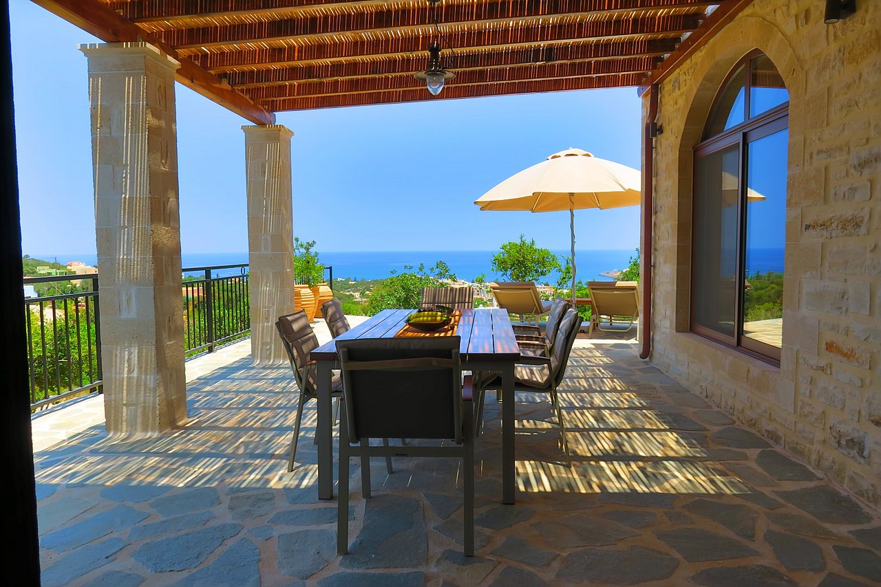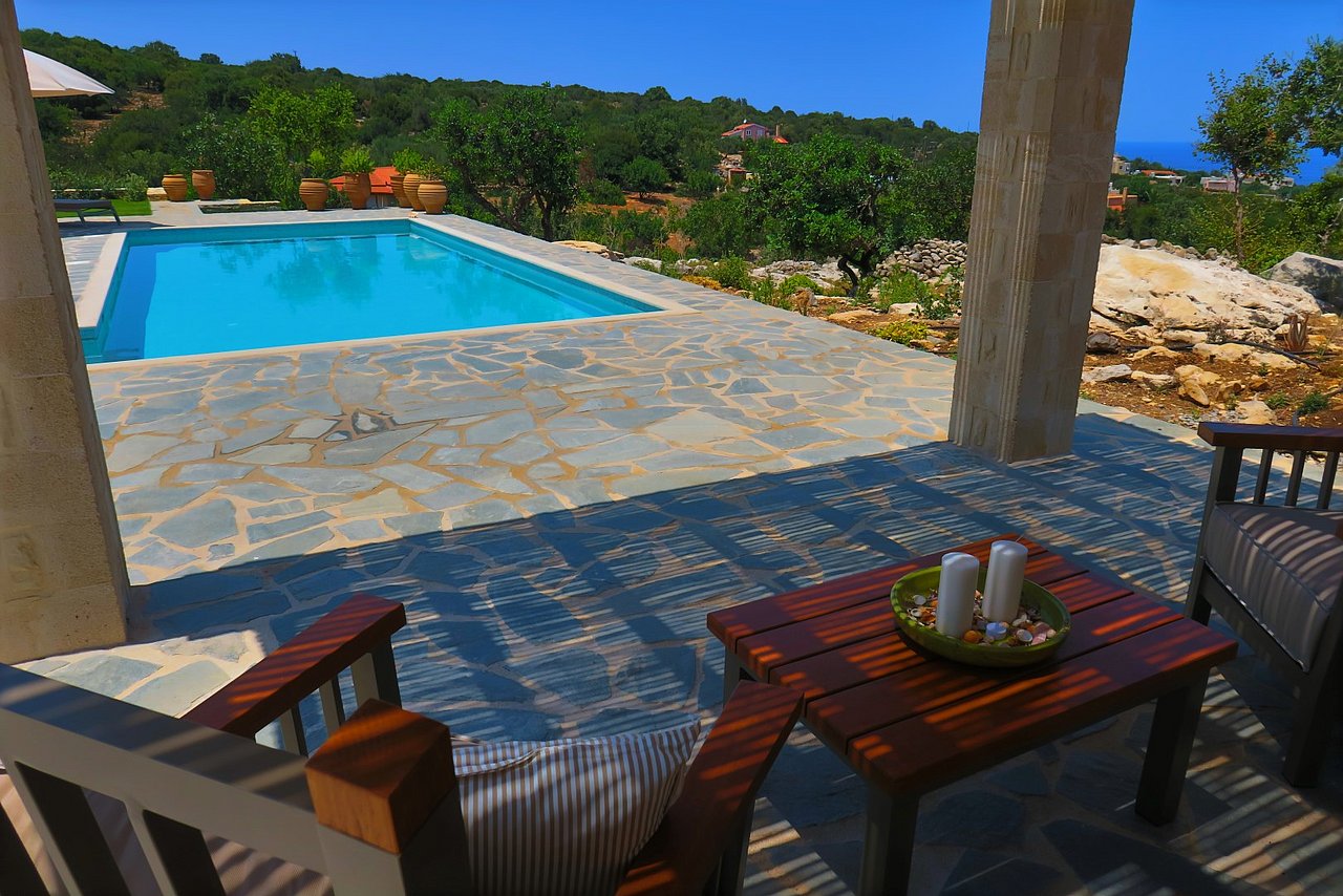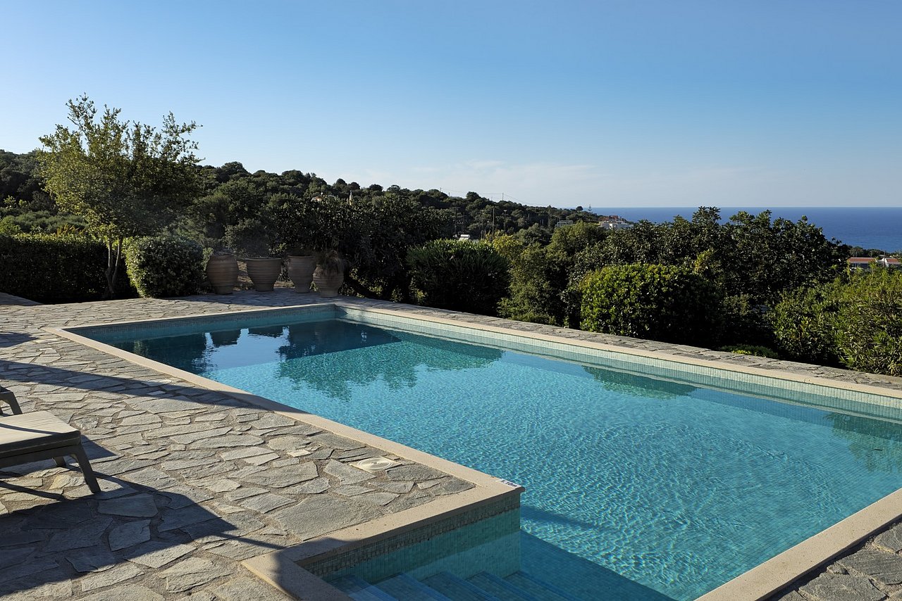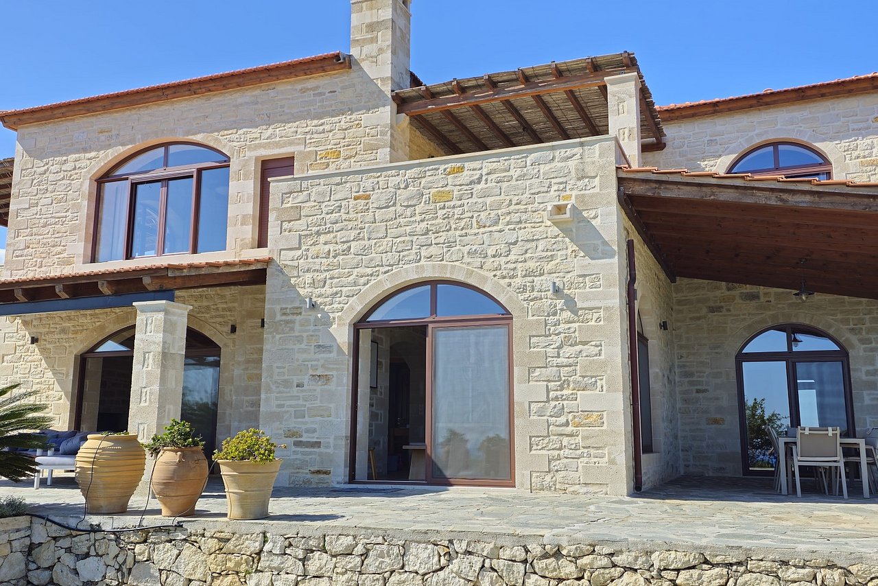 Die traumhaft gelegene, 2015 errichtete Natursteinvilla bietet mit einer Wohnfläche von ca. 235 qm Platz für mindestens 8 Personen und befindet sich auf einem einzigartigen, 12.000 qm großen vollständig eingezäunten Privatgrundstück oberhalb des kleinen Dörfchens Gerani und besticht mit einem fantastischen Meerblick aus allen Zimmern.