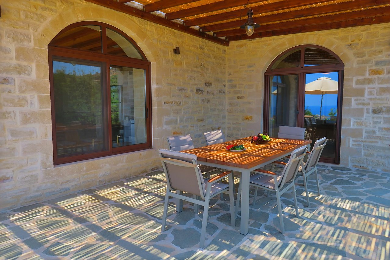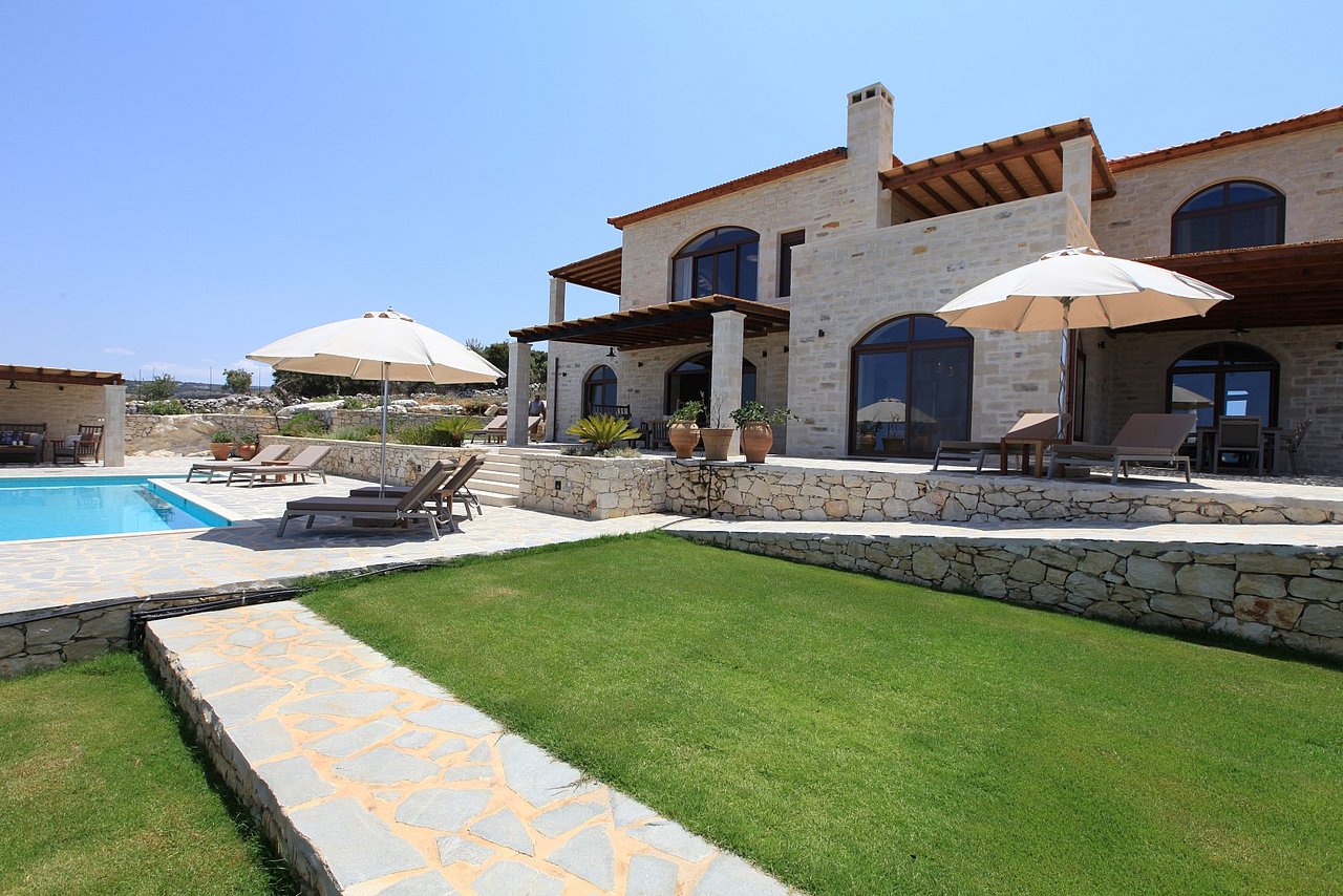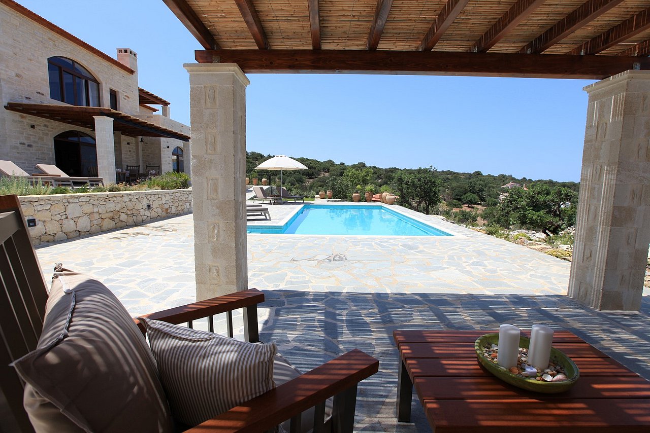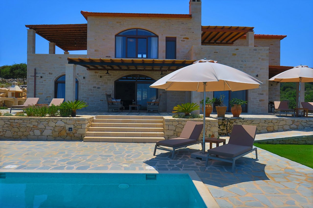 Die traumhaft gelegene, 2015 errichtete Natursteinvilla bietet mit einer Wohnfläche von ca. 235 qm Platz für mindestens 8 Personen und befindet sich auf einem einzigartigen, 12.000 qm großen vollständig eingezäunten Privatgrundstück oberhalb des kleinen Dörfchens Gerani und besticht mit einem fantastischen Meerblick aus allen Zimmern.