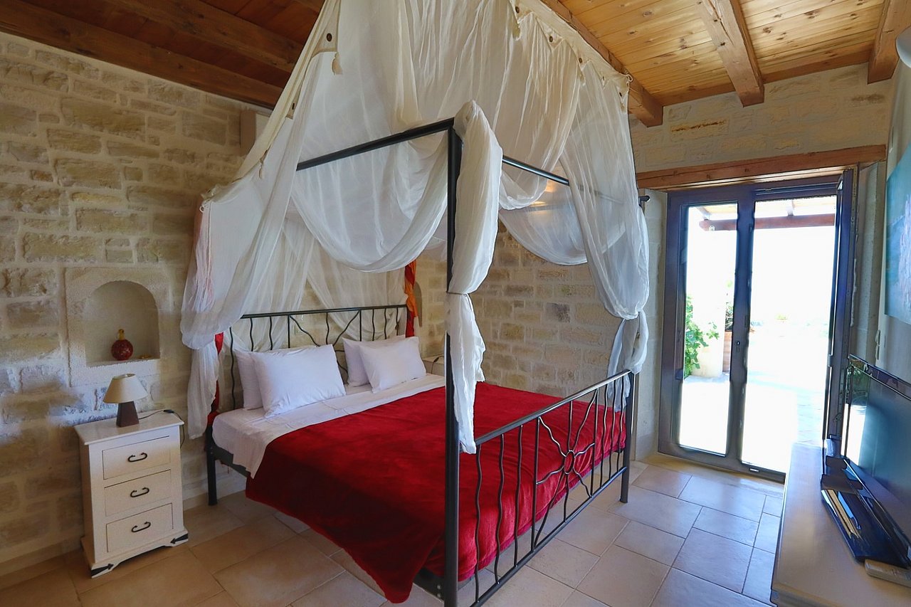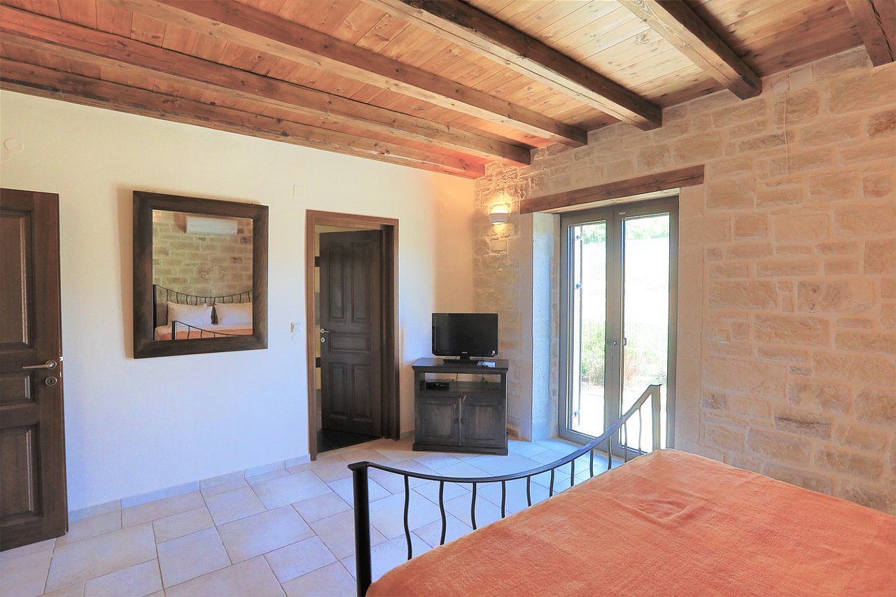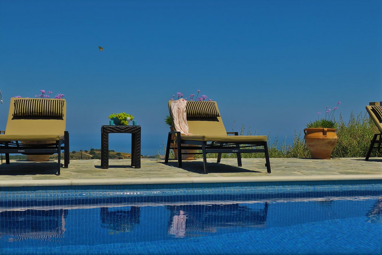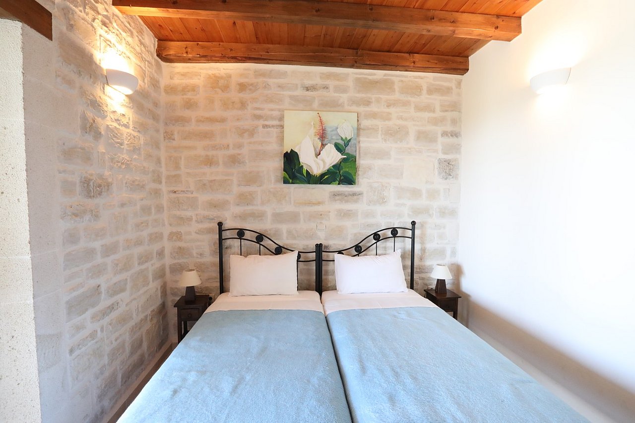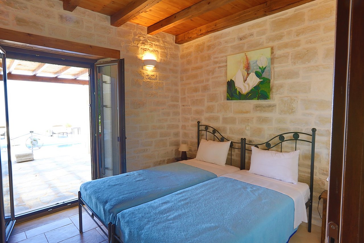 Die Villa liegt auf einem Hügel zwischen Atsipopoulo und Castellos und wurde im traditionellen kretischen Stil aus massivem Stein gebaut. Sie verfügt über einen grandiosen Blick auf die Berge und das Meer, und ist umgeben von einem 4.000qm großen Grundstück mit schönem, mediterranen Garten.