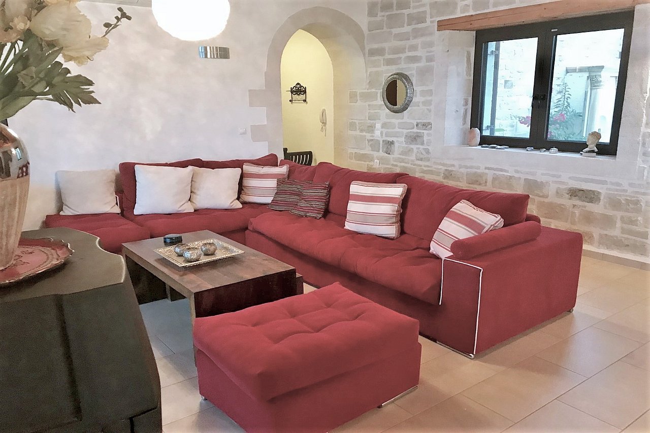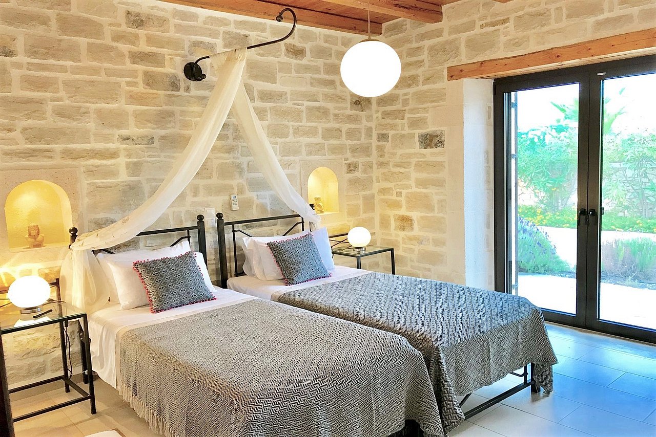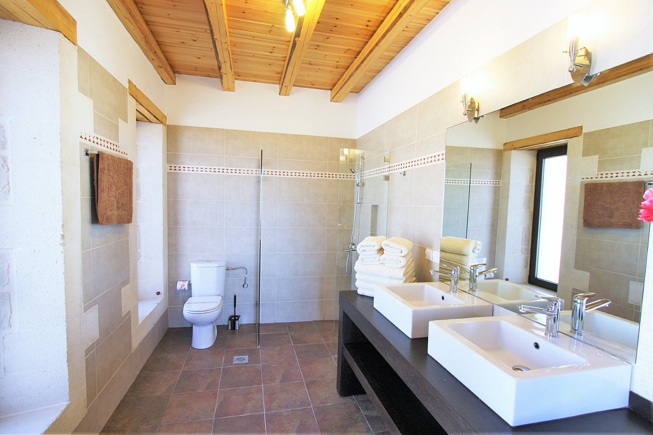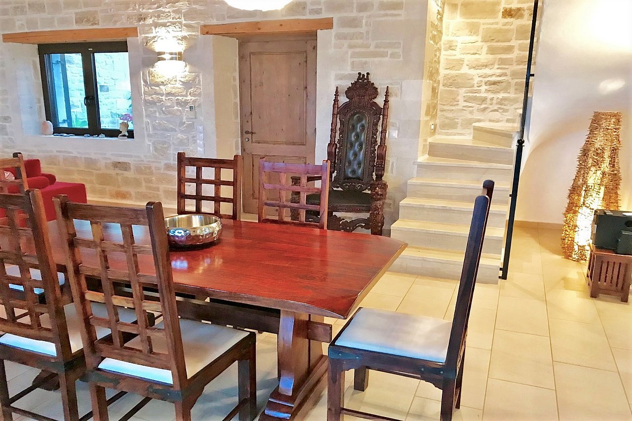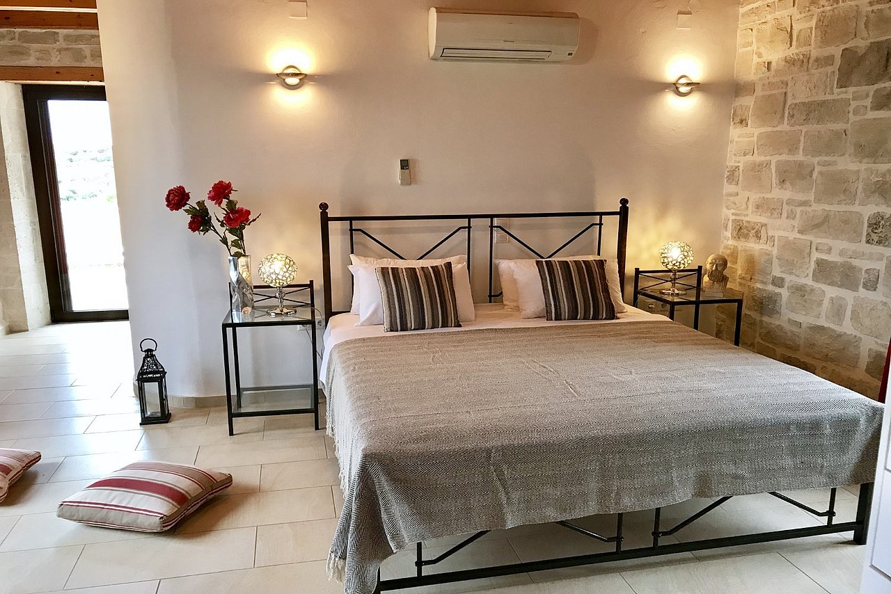 Auf einer Bergkuppe, ca. 3 Km vom Dorf Prines entfernt, thront diese extravagante 240qm-Luxusvilla mit atemberaubenden Weitblick auf Meer und Berge. Mit viel Gespür für Design und Stil wurde hier 2013 ein außergewöhnliches Anwesen in Natur-Steinbauweise erschaffen, das seines Gleichen auf Kreta sucht. Die Idee des Architekten war es, ein traditionelles kretisches Steinhaus mit venezianischen Einflüssen zu kombinieren, das an die Sommervillen des 16. Jahrhunderts auf Kreta erinnert.
