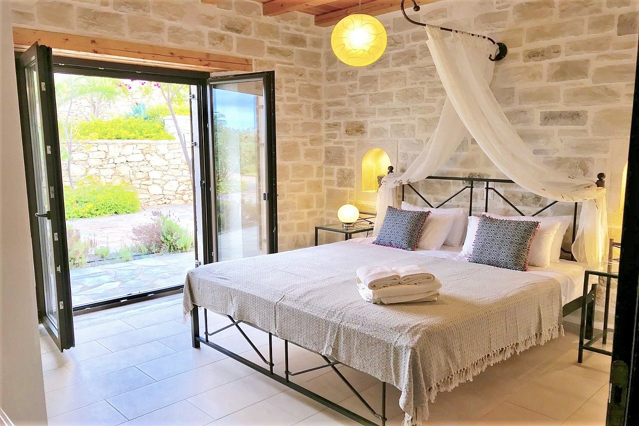 Erleben Sie die Villa persönlich und Sie werden verstehen, warum das Motto „Mehr Freiraum für Seele und Sinne“ alle Bereiche der Villa Rimondi treffend beschreibt. Licht und Raum sind Trumpf, so haben alle 4 Schlafzimmer große Fensterfronten, geräumige Einbauschränke und ein eigenes Badezimmer – 3 x ensuite, 1x separat. Und wenn Sie morgens im Master-Bedroom (ca. 30 qm) im Bett frühstücken möchten, können Sie dabei direkt dem Meer zuwinken. Vor dem Schlafengehen lohnt sich ein Schlummertrunk auf einer der beiden Dachterrassen. In der Ferne funkeln die Lichter der Dörfer und Boote. Atmen Sie tief ein und tanken Sie noch etwas von der nach frischen Bergkräutern duftenden Abendluft während Sie den fantastischen Sternenhimmel betrachten.