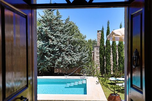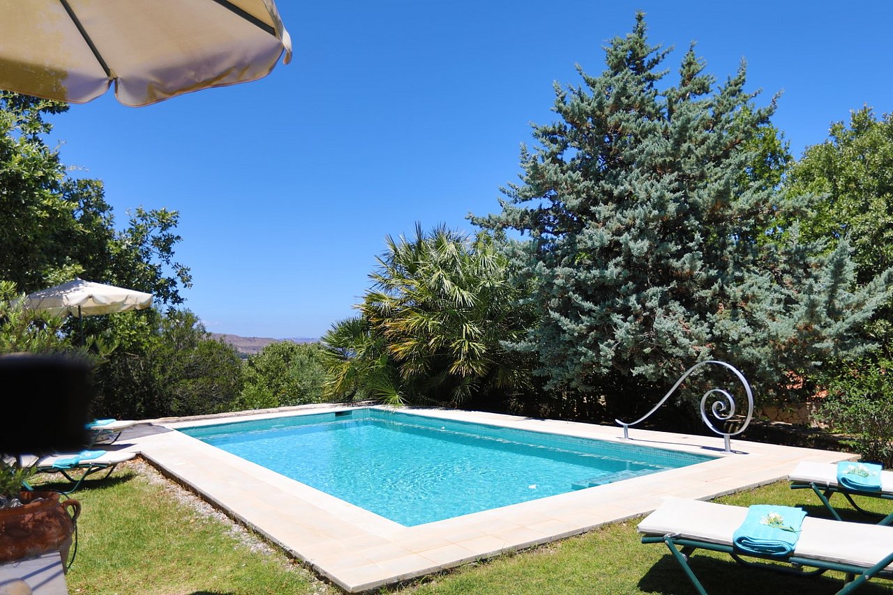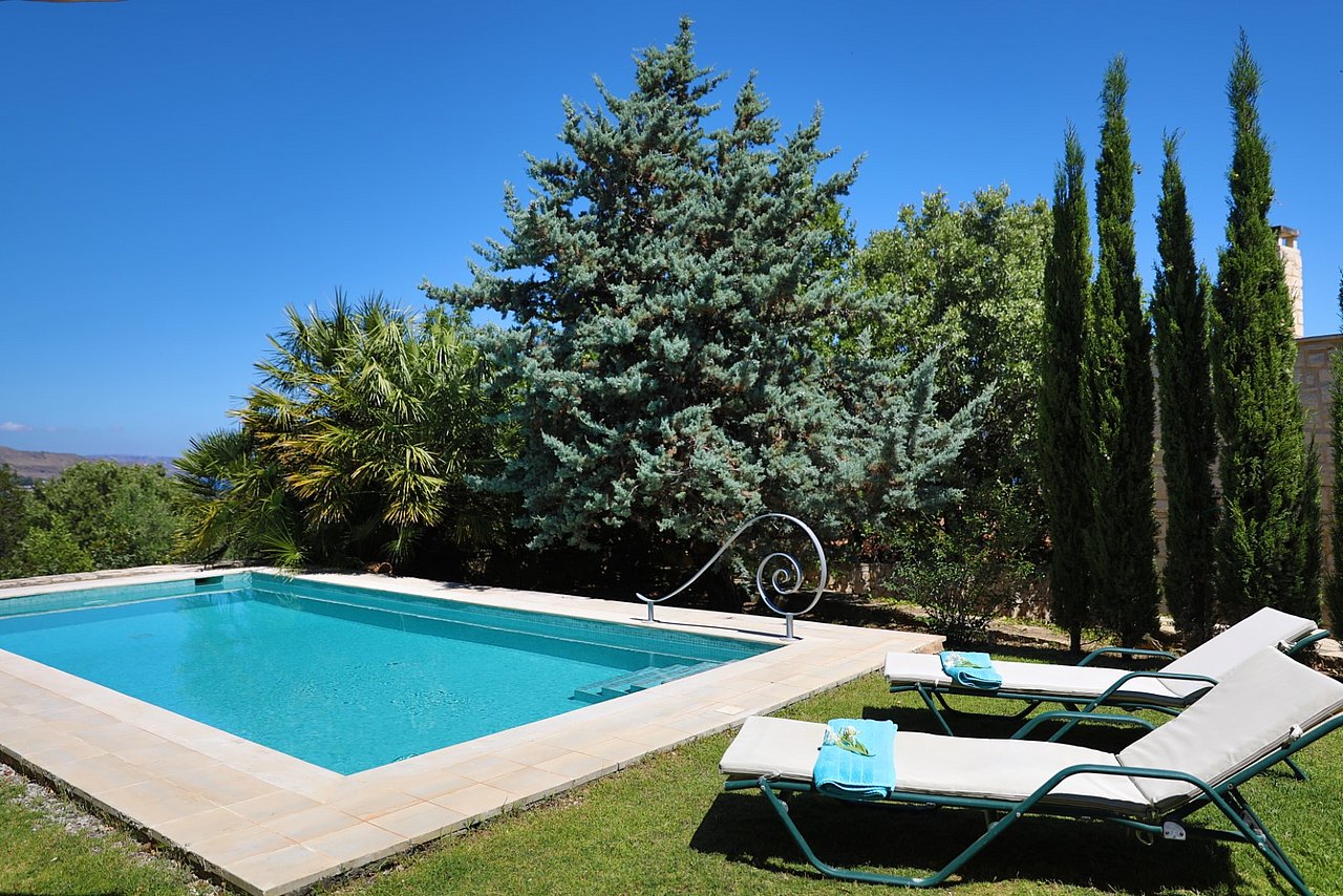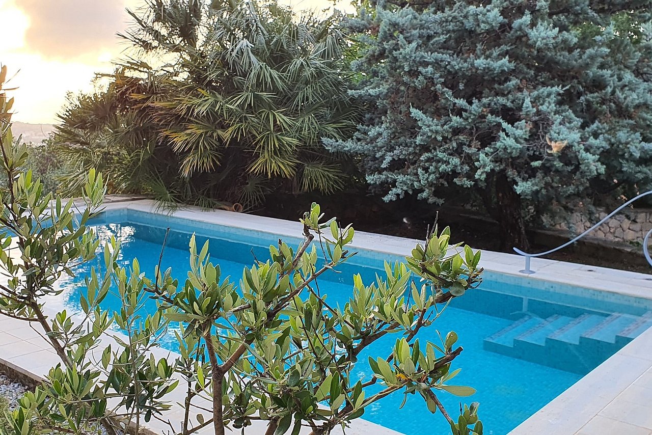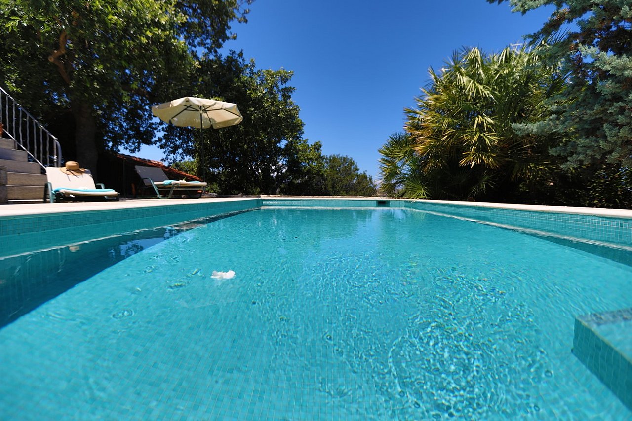Der Pool ist ca. 8 x 4 m und hat eine Treppe und einen Handlauf für einen bequemen Einstieg.