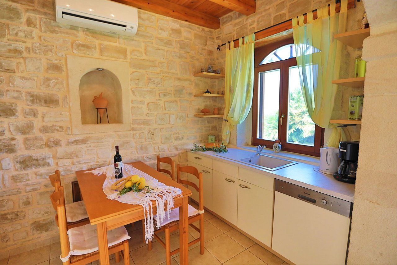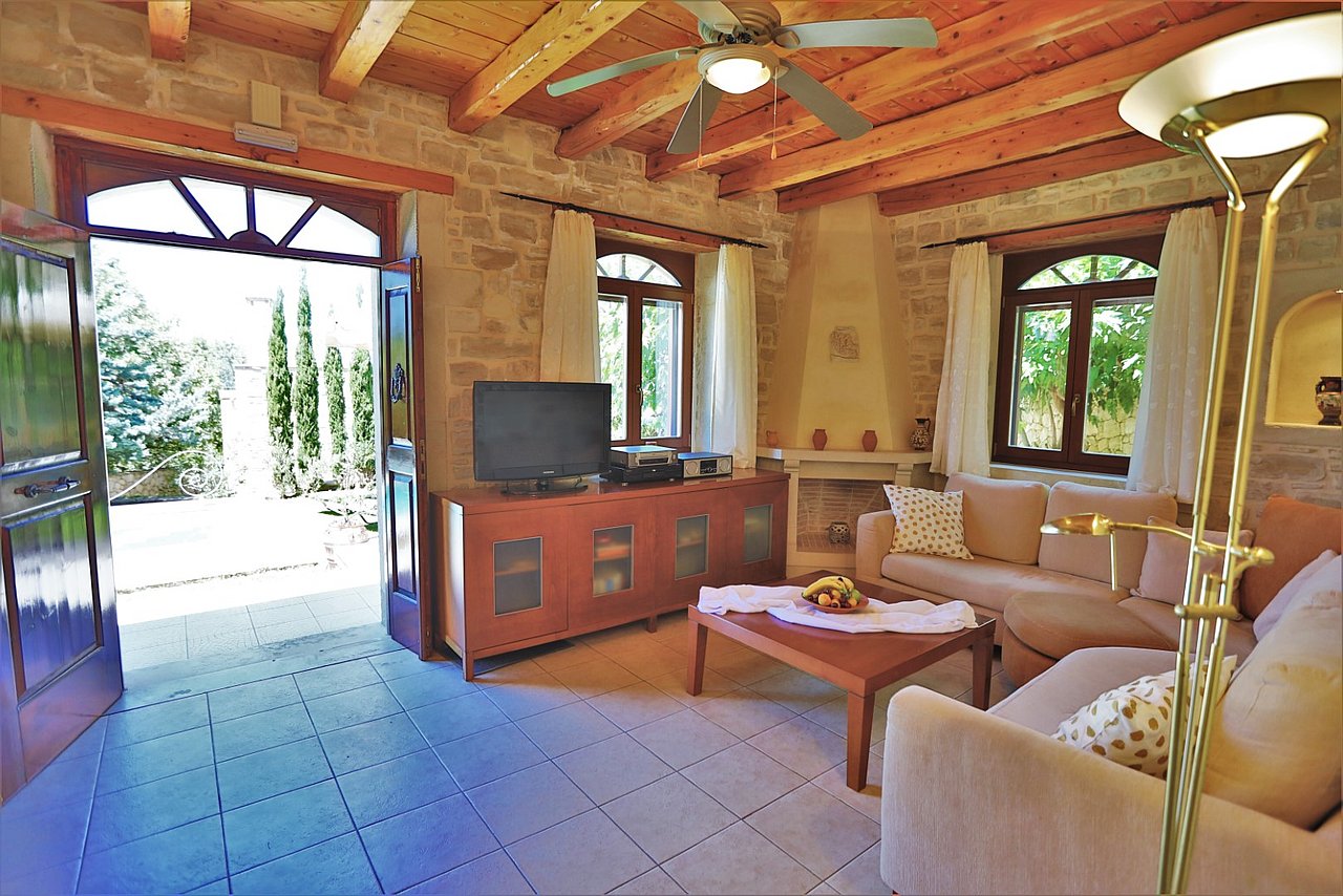 Die Villa wurde mit viel Liebe zum Detail eingerichtet und garantiert für einen hohen Wohnkomfort. Alle Räume sind mit Holz-Balkendecken ausgestattet und in den Wänden sind teilweise Steinbilder und Steinnischen integriert.