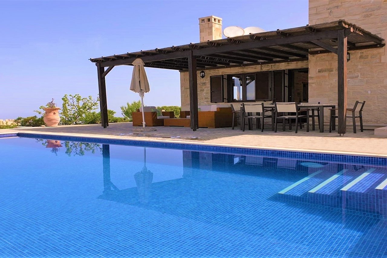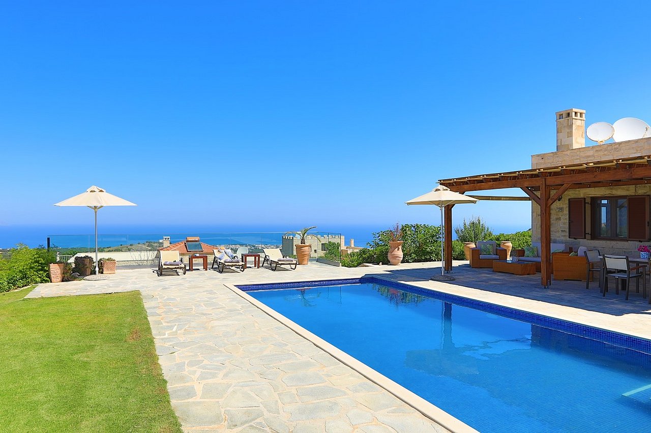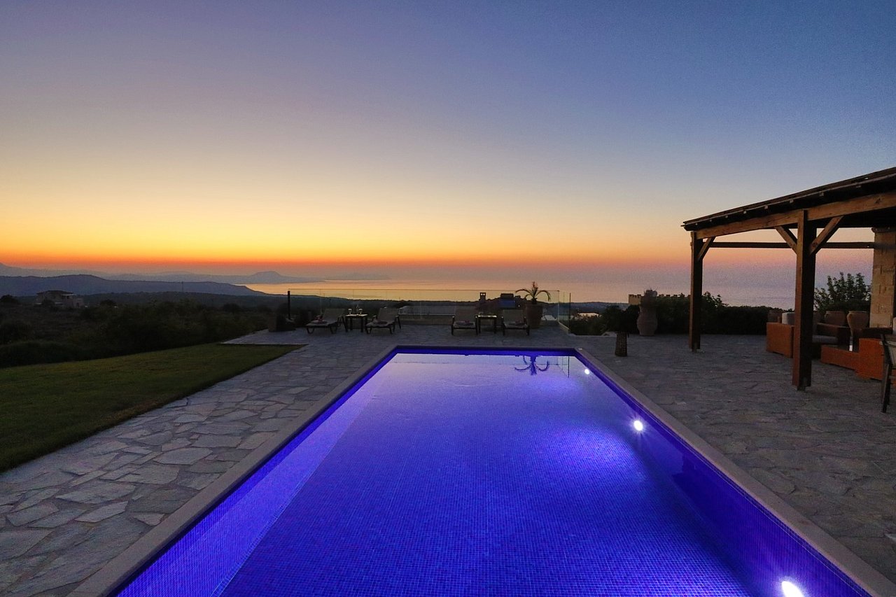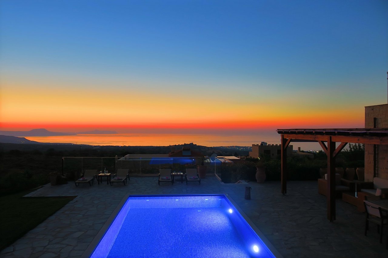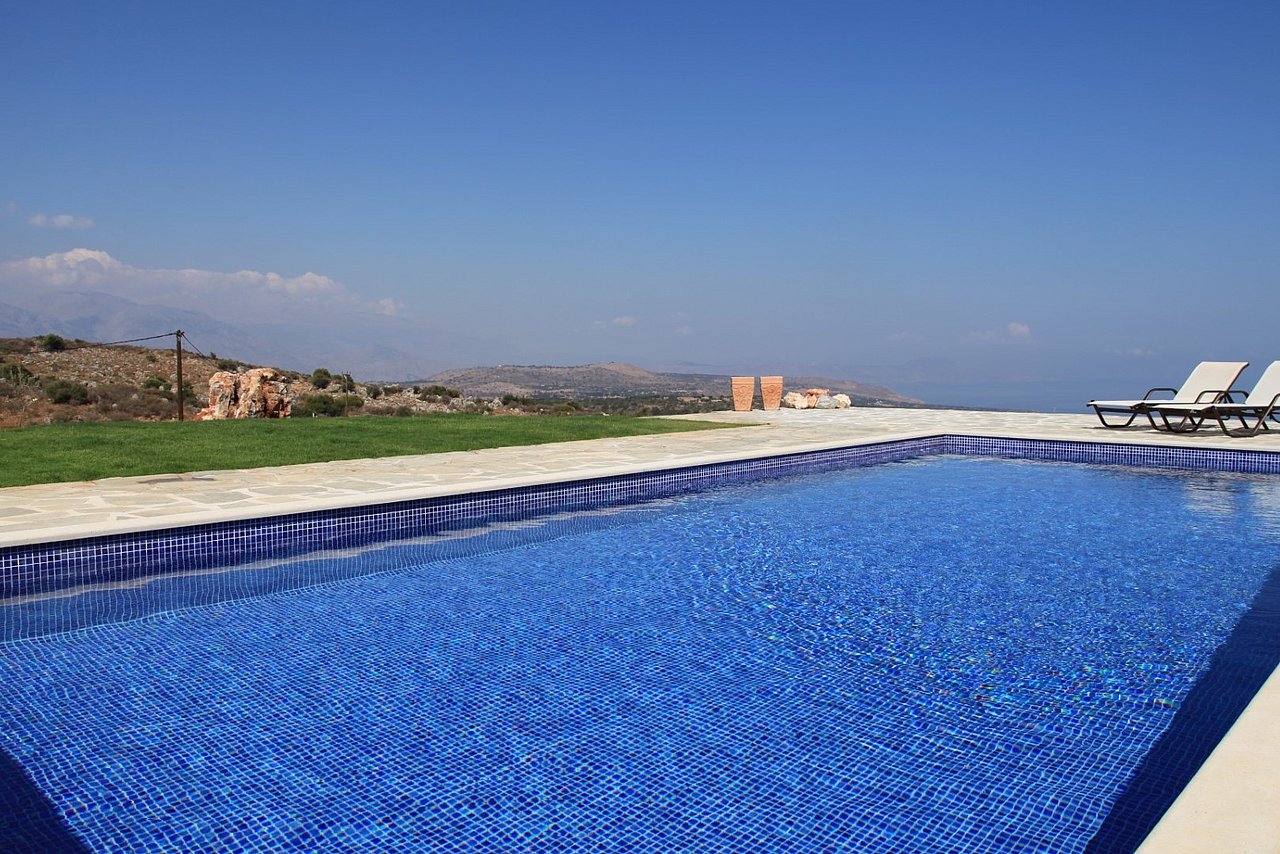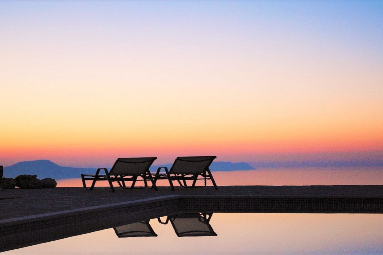 Morgens begrüßt Sie beim Tagesbeginn fröhliches Vogelgezwitscher und der Blick nach draußen schenkt Ihnen traumhaft viele Farben der Insel. Sie sehen die Weißen Berge, die Halbinsel Akrotiri und blicken über die Ägäis – einfach ein grandioses Panorama! Relaxen Sie an Ihrem über 40 qm großen privaten Pool. Die 125 qm große Villa teilt sich in zwei Wohnebenen auf, die durch eine große breite Treppe mit 5 Stufen und einem schönen Rundbogen miteinander verbunden sind. Von der ganzen Villa lässt sich der grandiose Ausblick genießen.