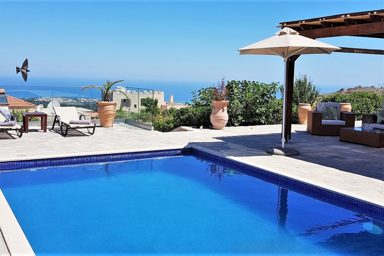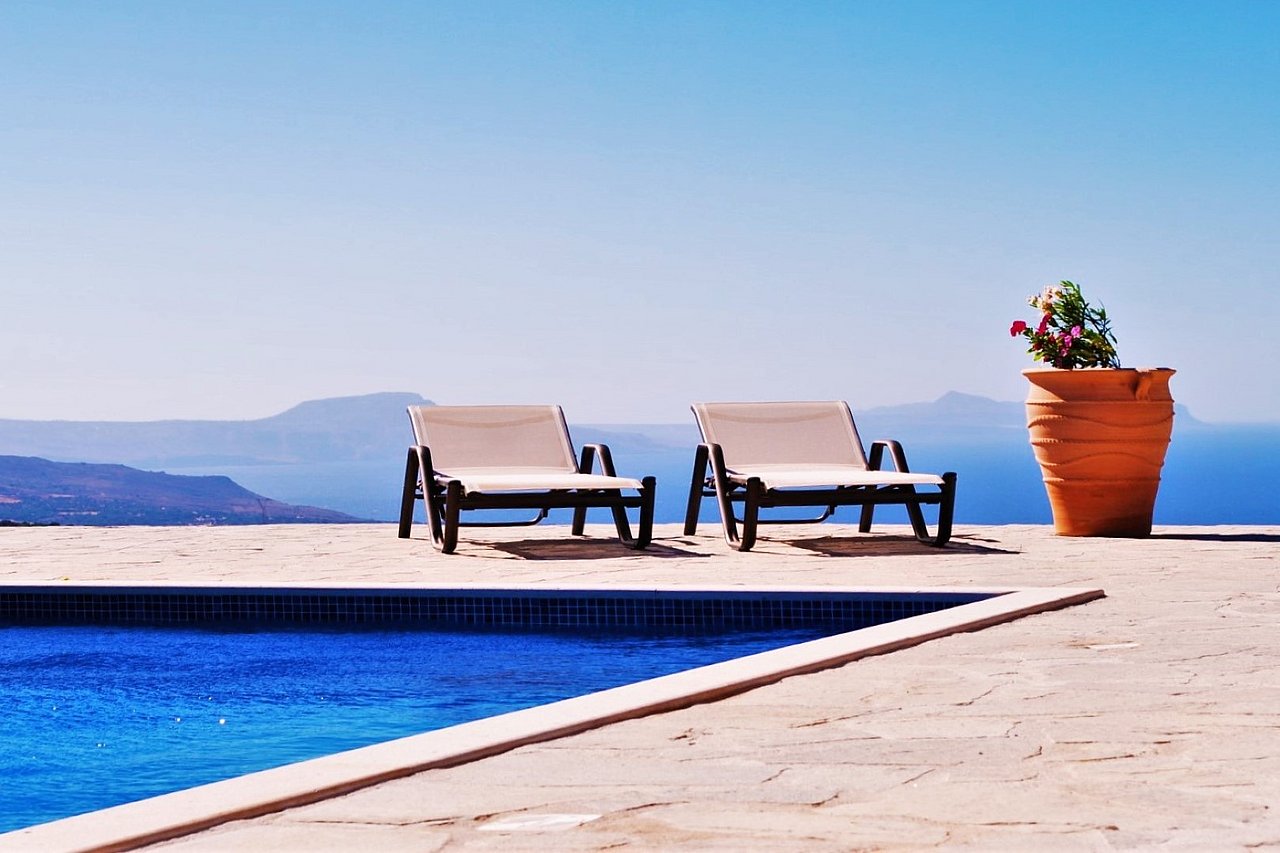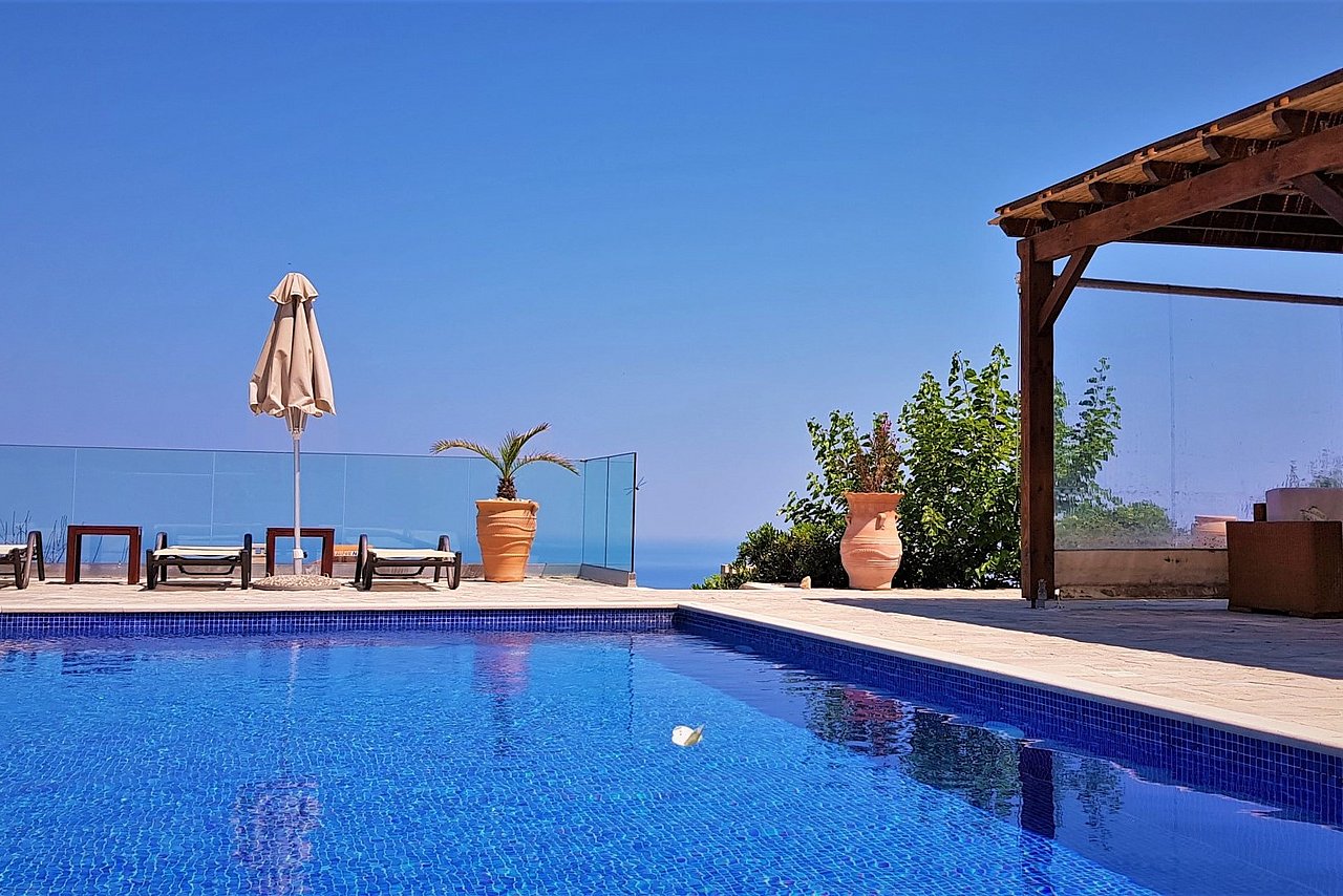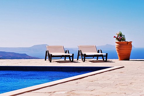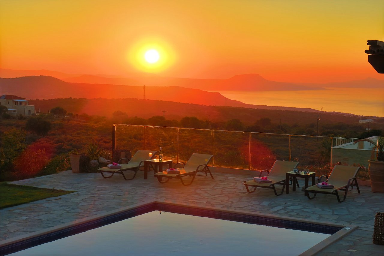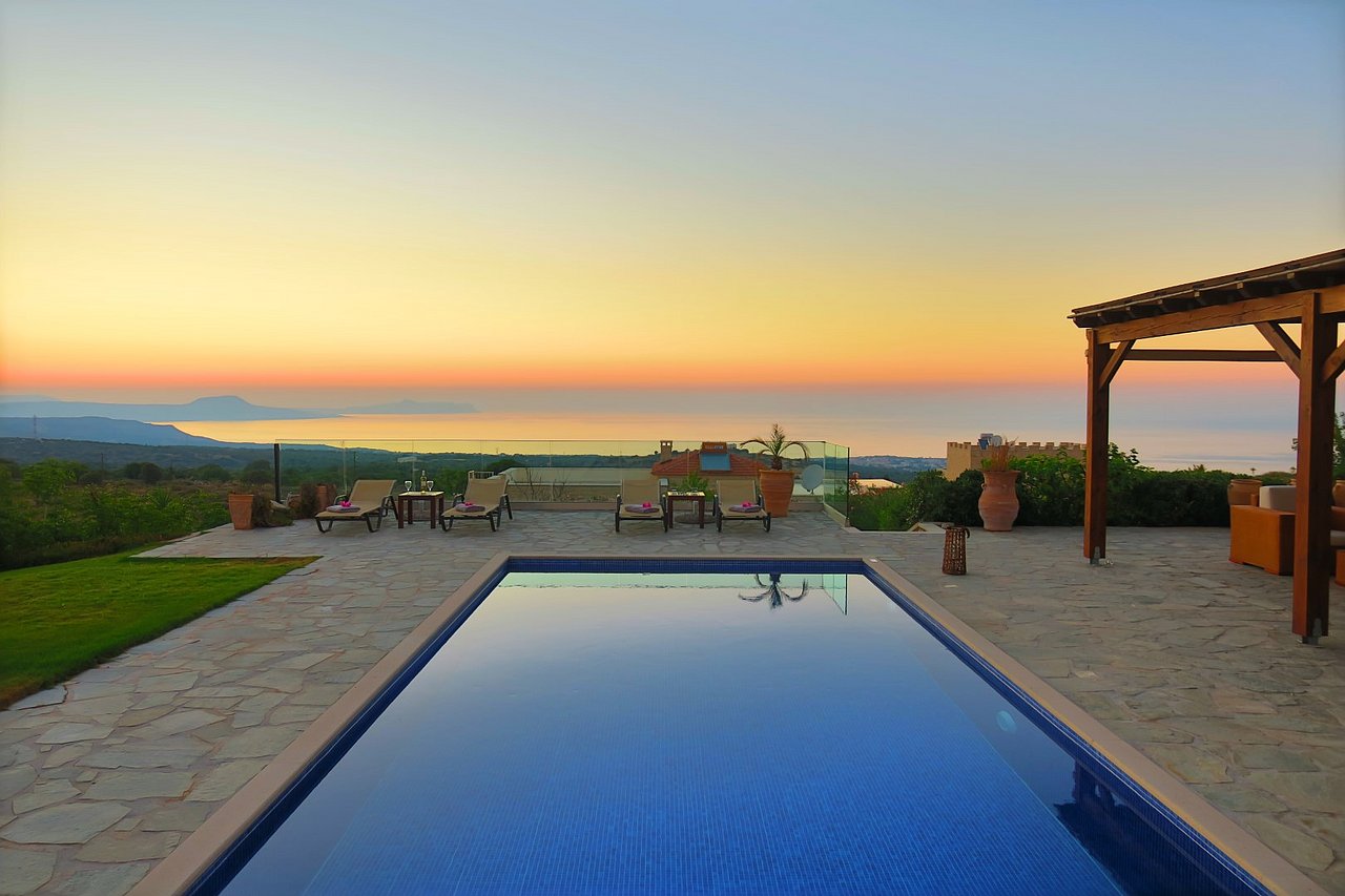 Morgens begrüßt Sie beim Tagesbeginn fröhliches Vogelgezwitscher und der Blick nach draußen schenkt Ihnen traumhaft viele Farben der Insel. Sie sehen die Weißen Berge, die Halbinsel Akrotiri und blicken über die Ägäis – einfach ein grandioses Panorama! Relaxen Sie an Ihrem über 40 qm großen privaten Pool. Die 125 qm große Villa teilt sich in zwei Wohnebenen auf, die durch eine große breite Treppe mit 5 Stufen und einem schönen Rundbogen miteinander verbunden sind. Von der ganzen Villa lässt sich der grandiose Ausblick genießen.