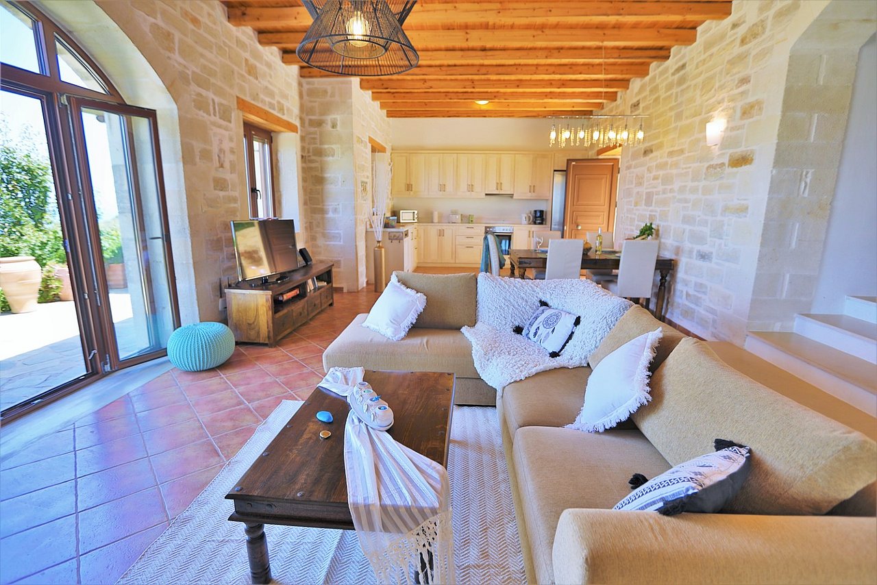 Ihre Villa liegt auf einem Hügel mit phantastischem Blick. In wenigen Minuten sind Sie in Rethymnon, der geheimen Hauptstadt Kretas. Oder in den umliegenden Dörfern. Sie haben einen herrlichen Blick auf das Meer, die Halbinsel Akrotiri, die Weißen Berge, auf Atsipopoulo und die Küste...