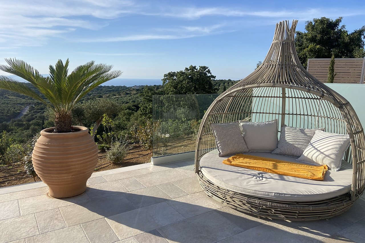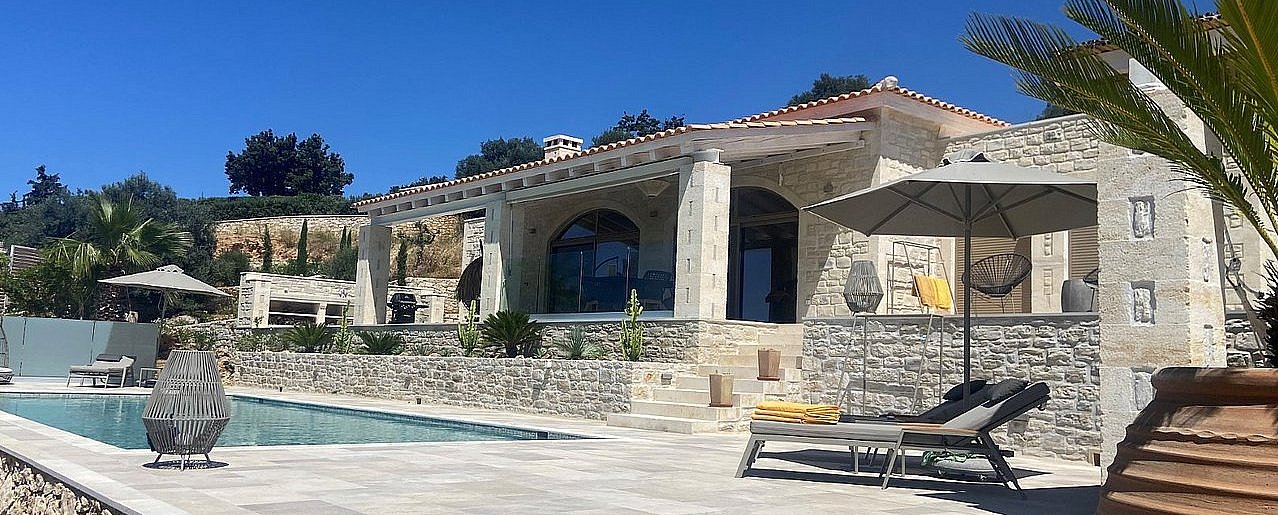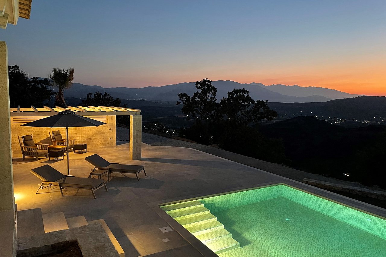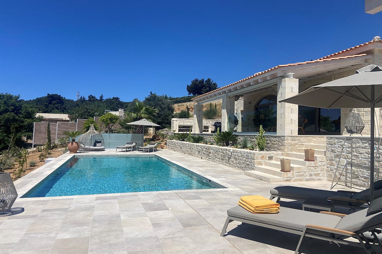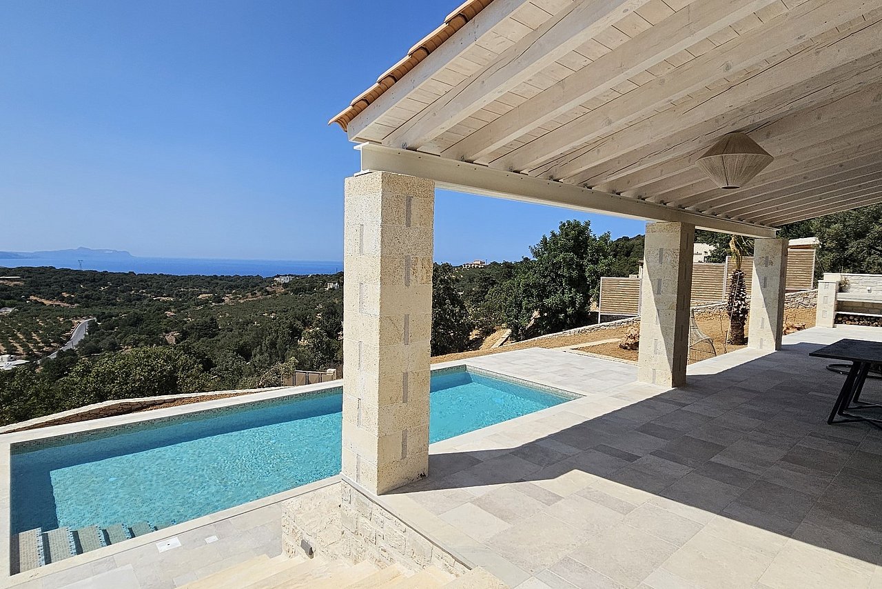 Die neu erbaute Villa Chalarosi auf der malerischen Insel Kreta,  Nähe Rethymno , verkörpert die Verbindung von Luxus und Naturschönheit auf einzigartige Weise.