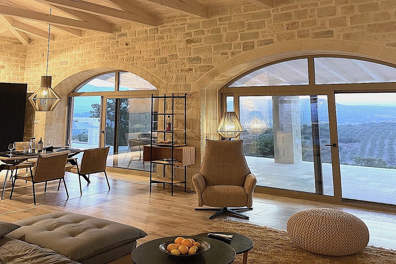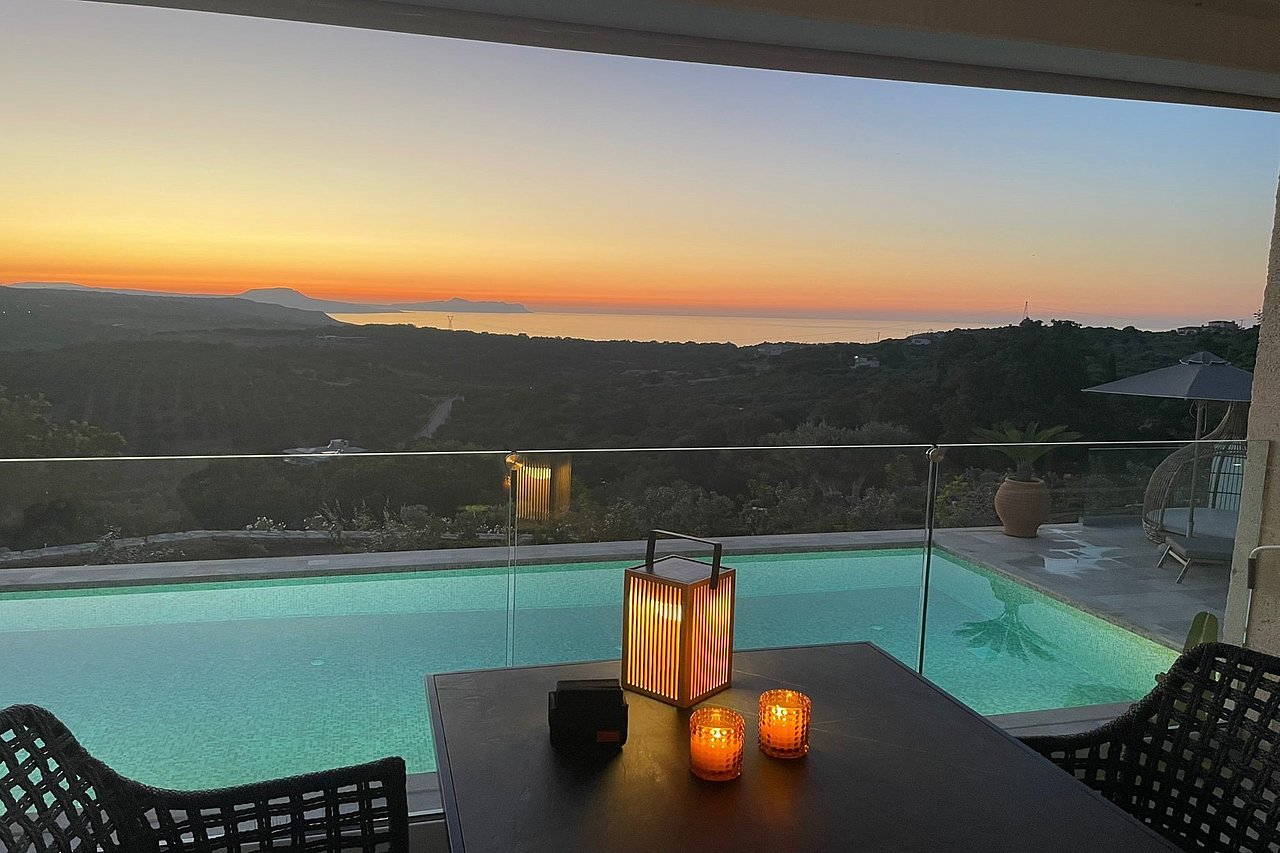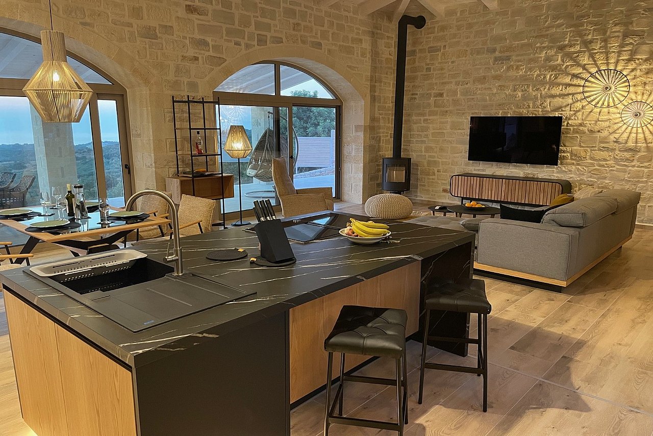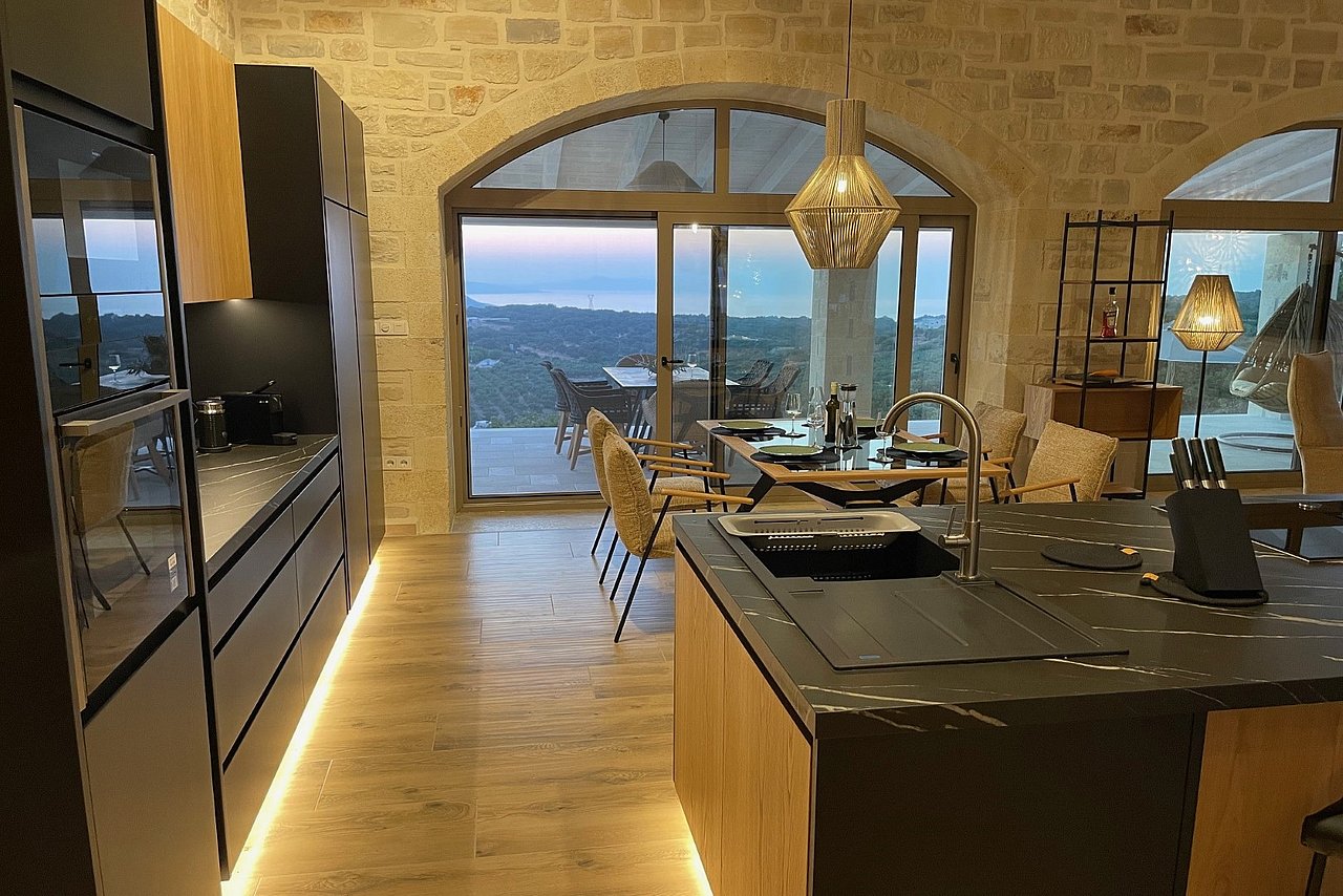 Die neu erbaute Villa Chalarosi auf der malerischen Insel Kreta,  Nähe Rethymno , verkörpert die Verbindung von Luxus und Naturschönheit auf einzigartige Weise.