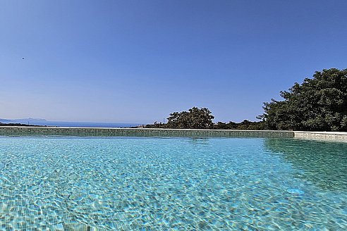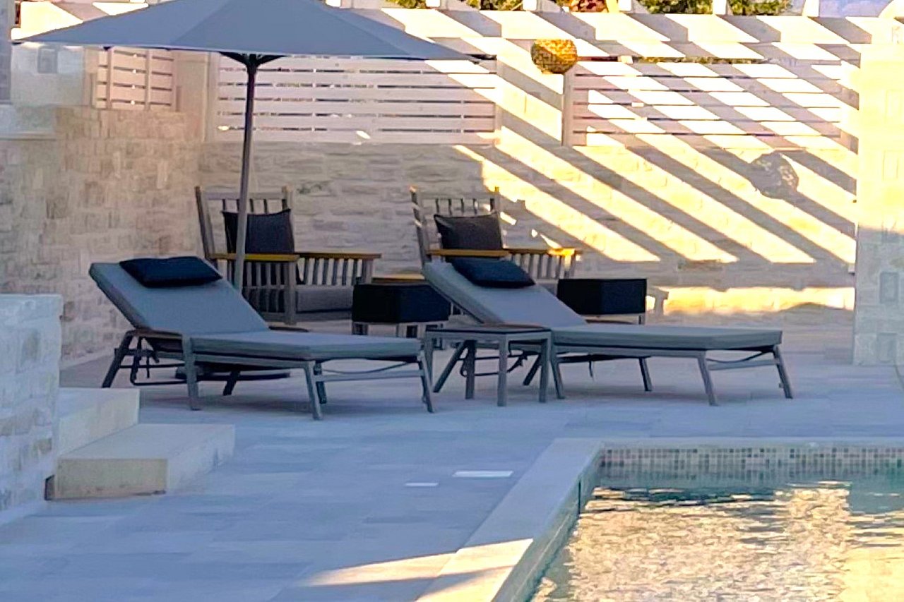 Von allen Räumlichkeiten, Pooldeck und der Terrasse haben Sie einen fesselnden Ausblick auf die Weißen Berge, sowie das glitzernde blau des Ägäischen Meeres und unvergesslichen Sonnenuntergängen. Einmalige Momente der Entspannung erwarten die Gäste auf dem großzügigen Pooldeck, wo eine sanfte Brise vom Meer her weht und der smaragdfarbene Salzwasserpool die Sinne belebt.