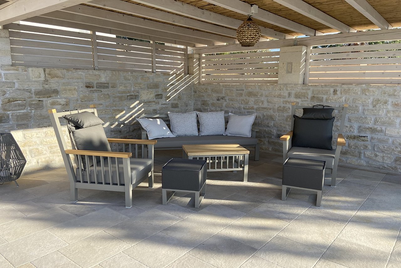 Diese prächtige Natursteinvilla , deren Name „Entspannung“ bedeutet, verspricht einen unvergleichlich erholsamen Aufenthalt inmitten einer bezaubernden Umgebung.