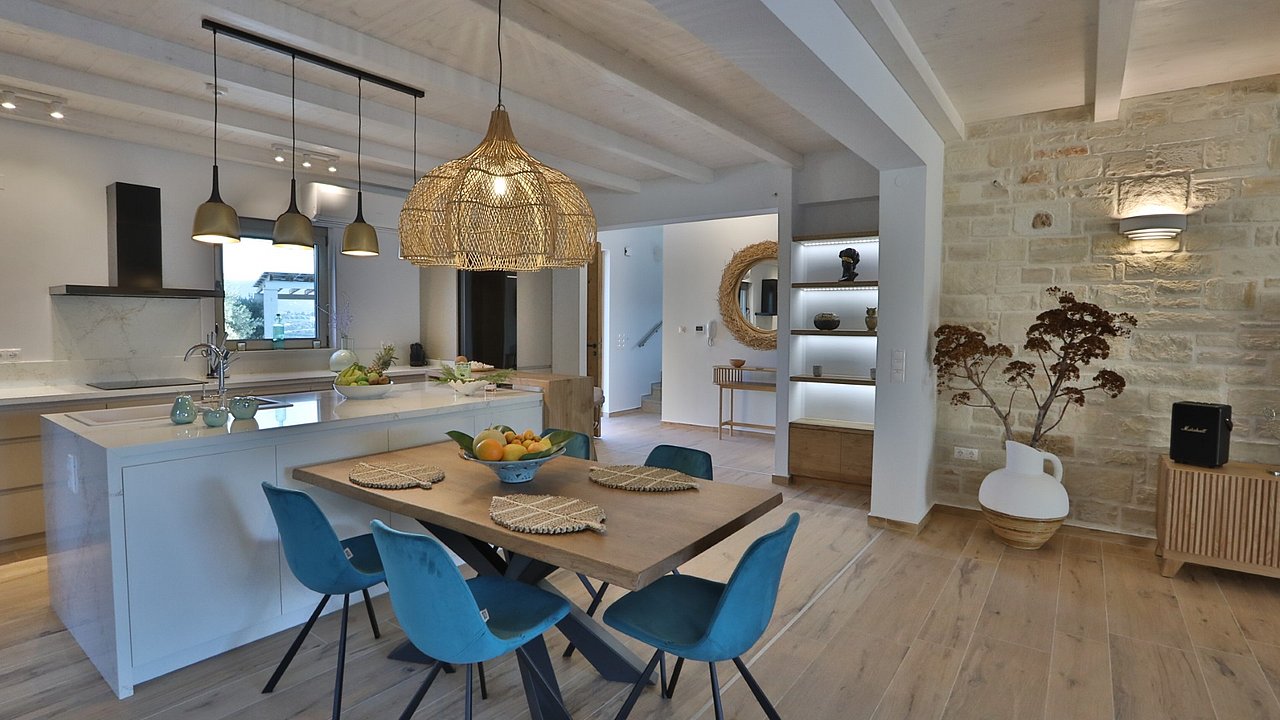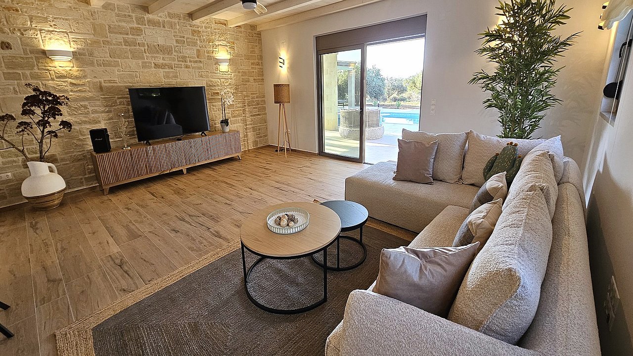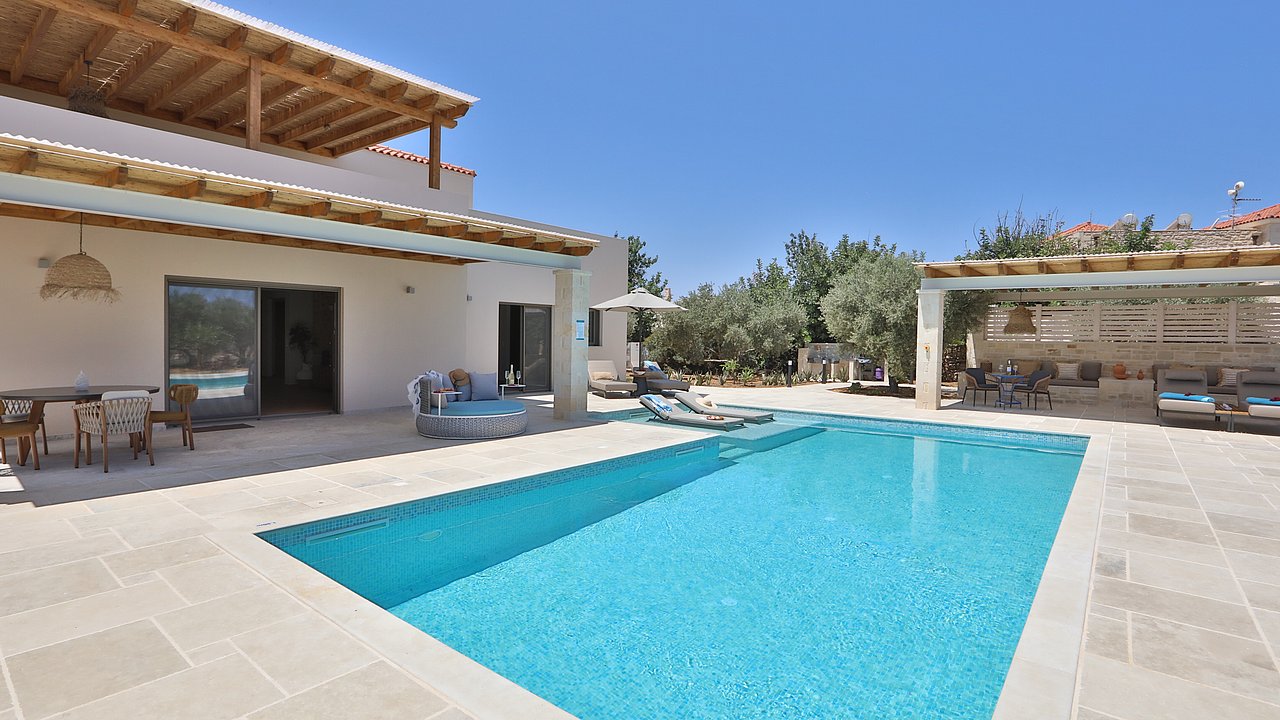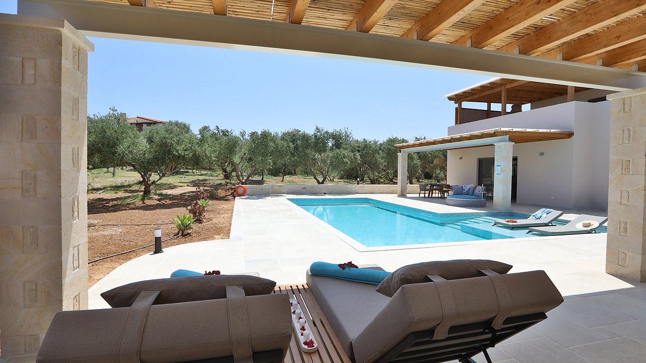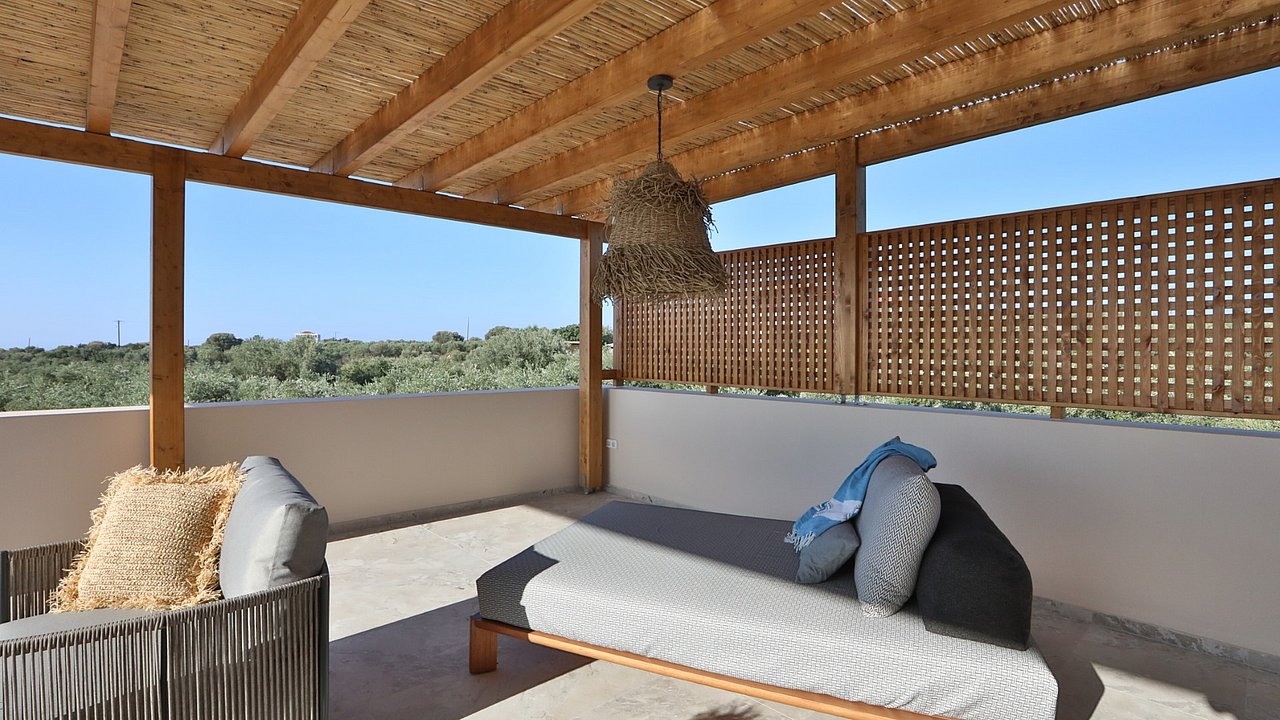Willkommen in der Villa Ephelia, einem Stilvollen Luxuriösem Rückzugsort im Herzen Kretas- eingebettet in einem wunderschönen Olivenhain. Ausblicke über die sanften Hügel von den Weißen Bergen im Westen bis zum Psiloritis im Osten und vor Ihnen die blaue Ägäis. Die über 70qm große Dachterasse eröffnet atemberaubende Panoramablicke...Vom Sonnenaufgang bis zum leuchtenden Sternenhimmel. Diese exklusive Villa wurde mit viel Liebe zum Detail erbaut und bietet luxuriösen Komfort auf höchstem Niveau. Mit ca 176qm Wohnfläche auf einem 4.000qm großen Grunstück ist die Villa ideal für Paare, Familien oder Freunde, die Ruhe, Design und Natur in stilvoller Kombination erleben möchten. Bis zu vier Erwachsene plus Baby finden hier großzügig Platz und absolute Privatsphäre.