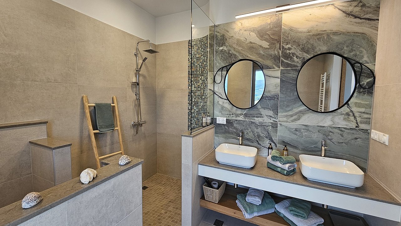 Jedes Schlafzimmer ist mit einem eigenen großzügigen En-suite-Badezimmer ausgestattet. Die ebenerdigen Regenduschen, das sorgfältig ausgewählte Interior und die hochwertigen Pflegeprodukte von Damana schaffen einen privaten Spa-Moment direkt im eigenem Raum.