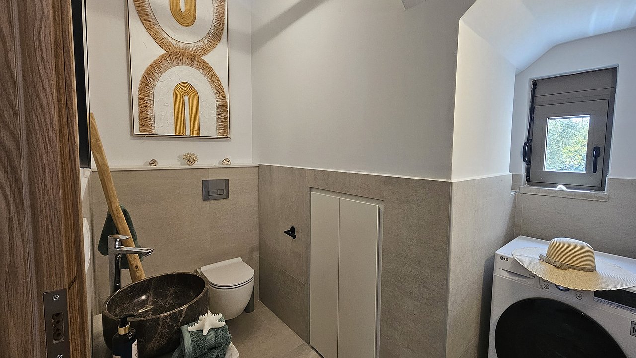 Kücheninsel, Nespresso-Maschine, Filter-Kaffee-Maschine, Toaster, Wasserkocher, elektrische Saftpresse, ein Mixer, hochgesetzter Geschirrspüler, hochgesetzter Ofen, Induktionsherd, Mikrowelle, Waschmaschine/Trockner, Staubsauger, Bügeleisen, Bügelbrett, Handtücher, Duschtücher, Pooltücher, Geschirrtücher, Föhn, Schminkspiegel (beleuchtet), Personenwaagen, kleine Bibliothek, Brettspiele, 2 en-Suite Bäder, Gästetoilette, riesige Gartendusche mit Kalt- und Warmwasser, in jedem Schlafzimmer einen Tresor, Staubsauger, Besen, Abstellraum…. Alle Fenster haben Moskitonetze und können mit Rollos verdunkelt werden. Beleuchtete Kleiderschränke.