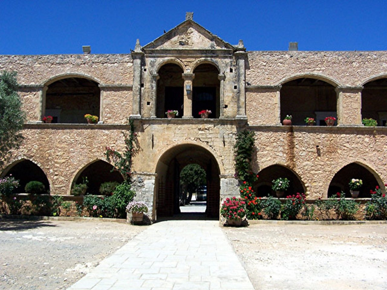 In dem äußerlich unscheinbaren Kloster hat sich eine der grausigsten Tragödien des kretisch/griechischen Freiheitskampfs abgespielt. Am 9. November 1866 begingen hier Hunderte von Männern, Frauen und Kindern gemeinsamen Selbstmord, um nicht den anstürmenden türkischen Truppen in die Hände zu fallen. Obwohl die Nachricht von dem schrecklichen Ereignis die Menschen in aller Welt aufrüttelte, dauerte es noch über 30 Jahre, bis die Insel endlich mit Hilfe der Großmächte vom türkischen Joch befreit wurde.